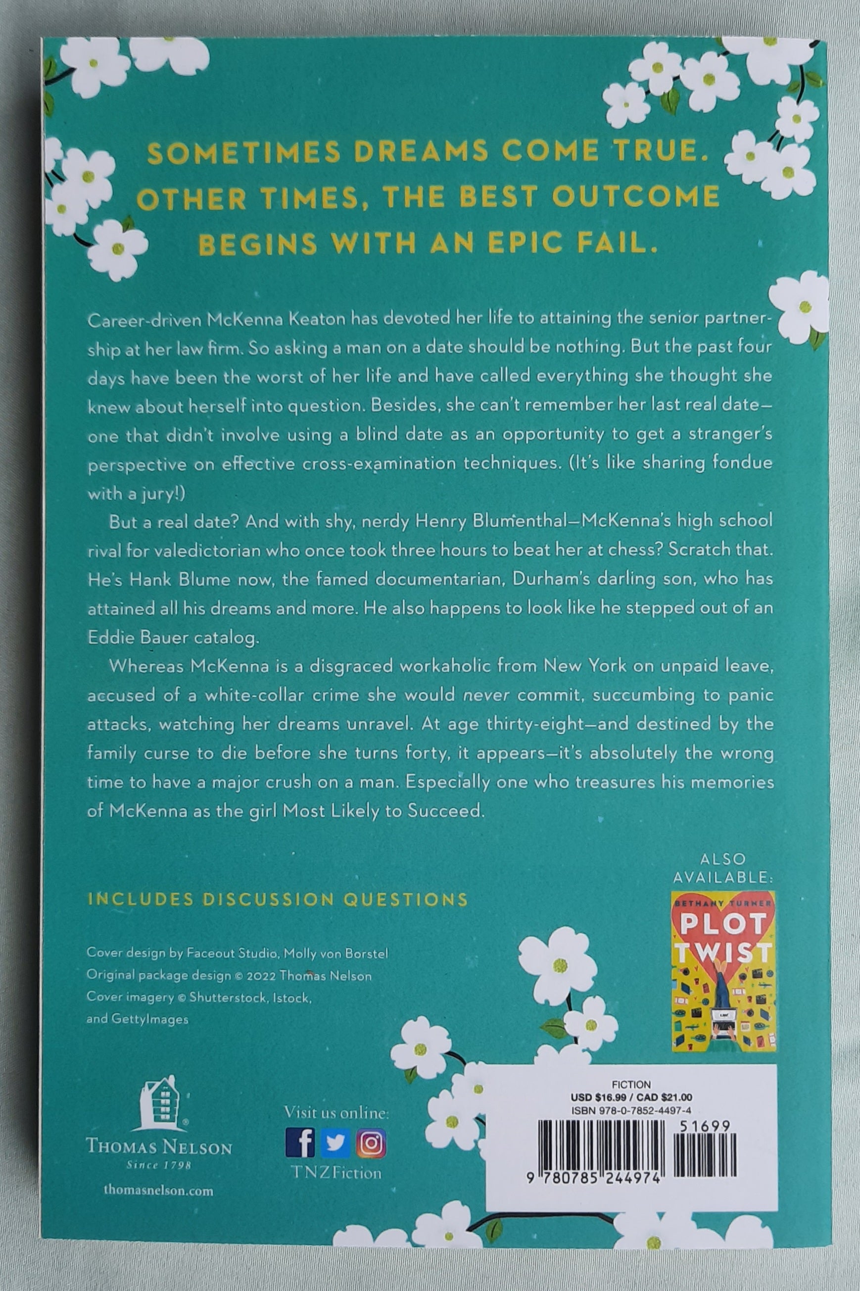 Whereas McKenna is a disgraced workaholic from New York on unpaid leave, accused of a white-collar crime she would never commit, succumbing to panic attacks, watching her dreams unravel. At age thirty-eight—and destined by the family curse to die before she turns forty, apparently—it’s absolutely the wrong time to have a major crush on a man. Especially one who treasures his memories of McKenna as the girl Most Likely to Succeed.
