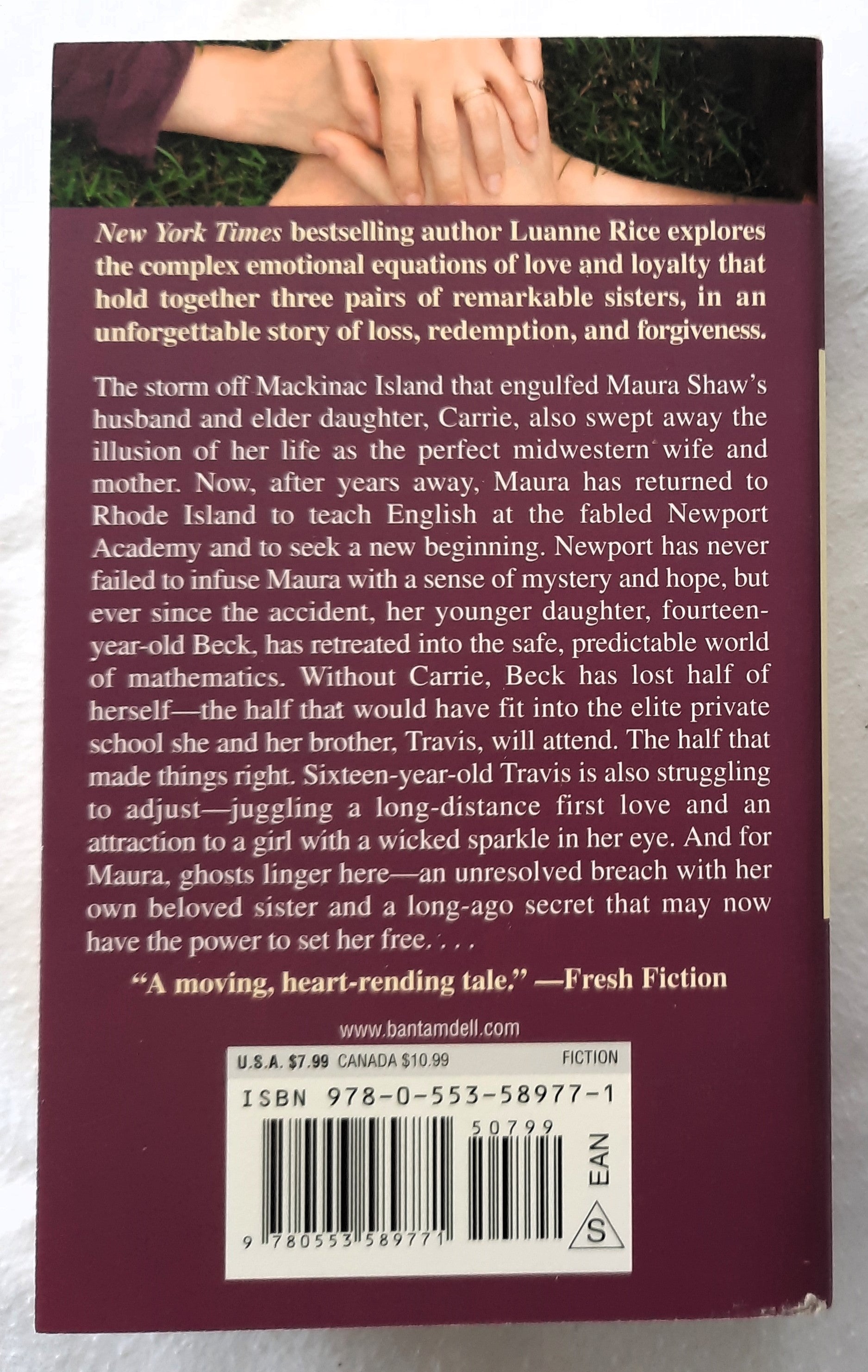 The storm off Mackinac Island that engulfed Maura Shaw’s husband and elder daughter, Carrie, also swept away the illusion of her life as the perfect Midwestern wife and mother. Now, after years away, Maura has returned to Rhode Island to teach English at the fabled Newport Academy and to seek a new beginning. Newport has never failed to infuse Maura with a sense of mystery and hope, but ever since the accident, her younger daughter, fourteen-year-old Beck, has retreated into the safe, predictable world of mathematics.