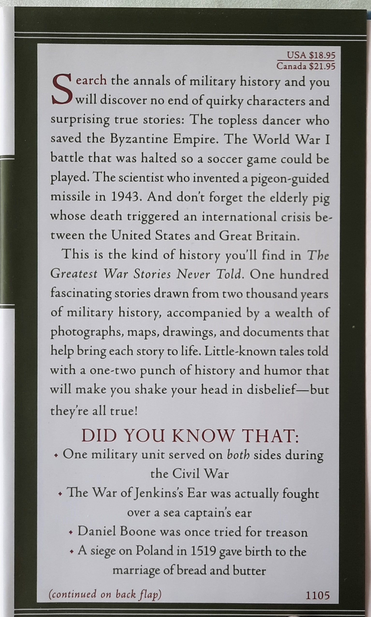 This is the kind of history you'll find in The Greatest War Stories Never Told. One hundred fascinating stories drawn from two thousand years of military history, accompanied by a wealth of photographs, maps, drawings, and documents that help bring each story to life. Little-known tales told with a one-two punch of history and humor that will make you shake your head in disbelief -- but they're all true!