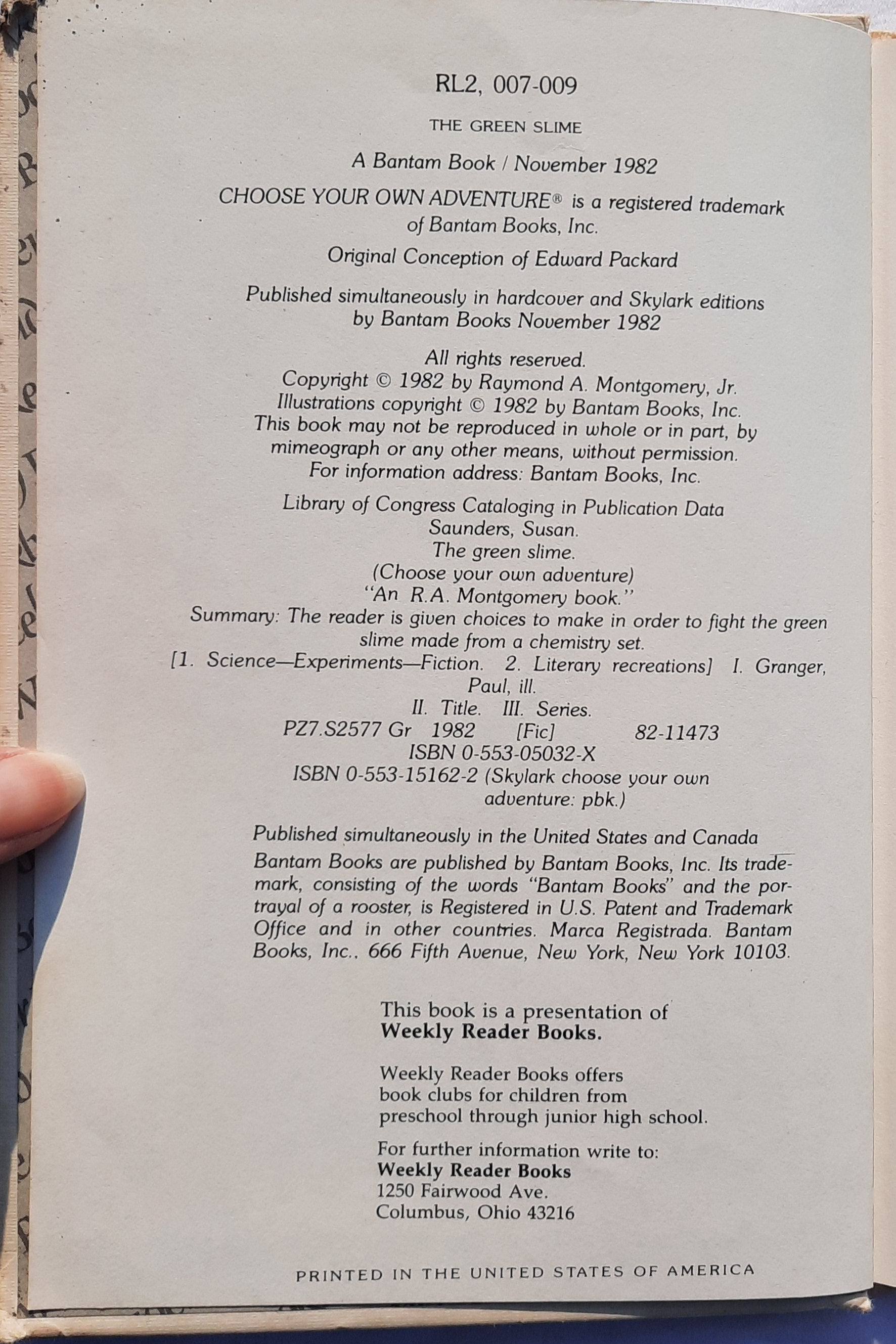 The Green Slime by Susan Saunders; Paul Granger (Choose Your Own Adventure, Good, 1982, HC, 52 pages, Weekly Readers Books)
