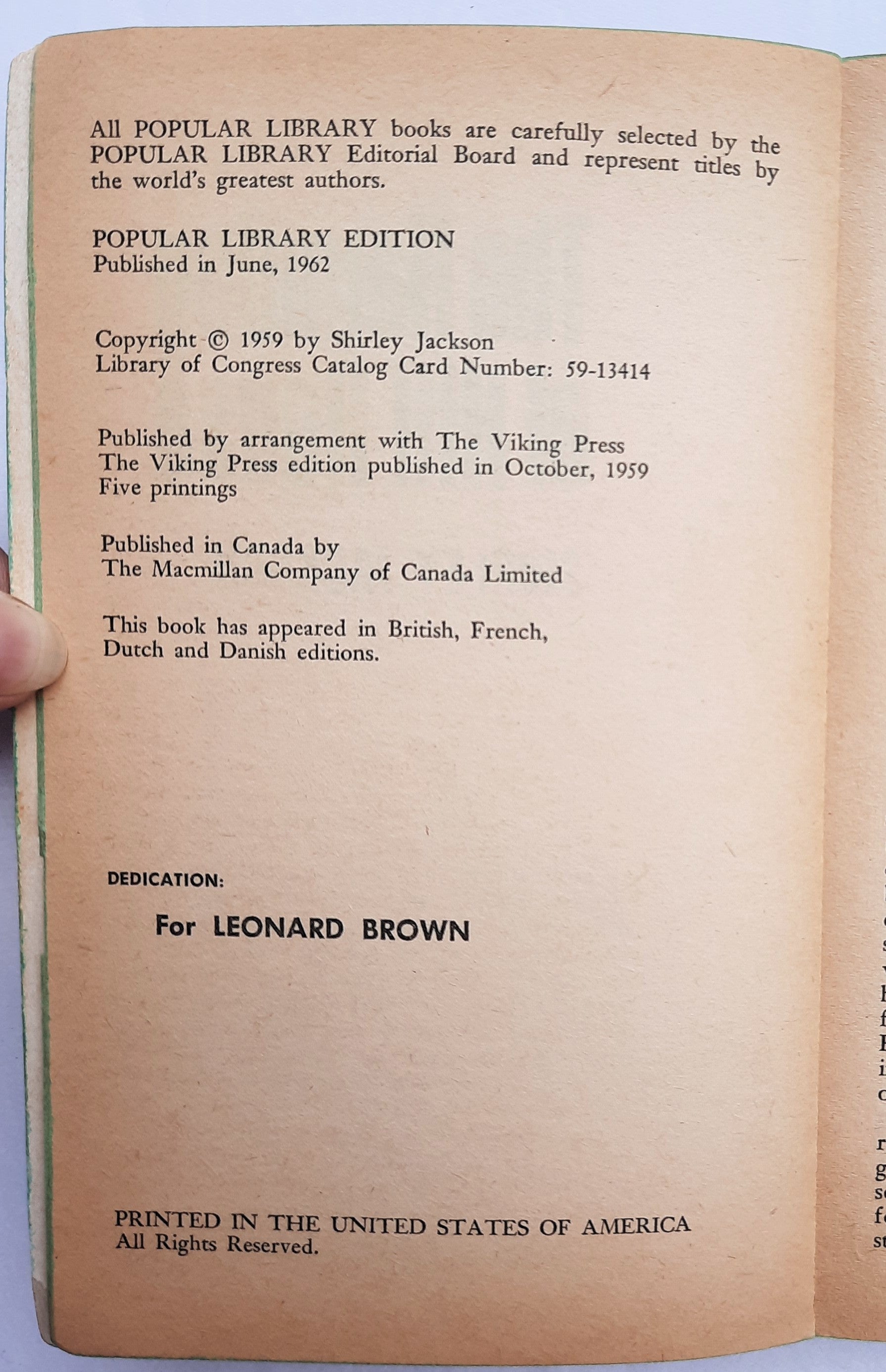 The Haunting of Hill House by Shirley Jackson (Very good, 1962, Pbk, 174 pages, Popular Library)