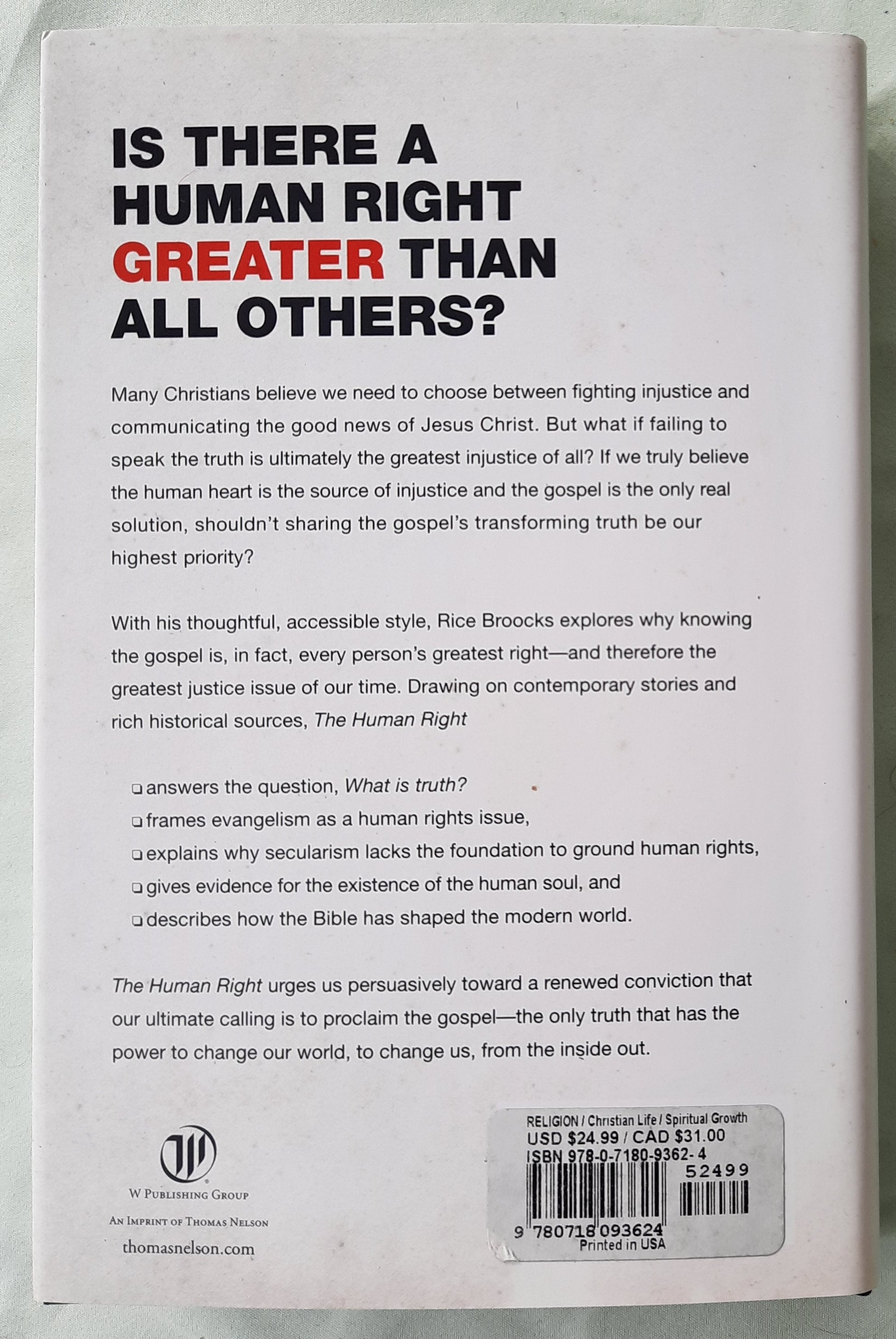 The Human Right to Know Jesus Christ and Make Him Known by Rice Broocks (New, 2018, HC, 293 pages, W Publishing)