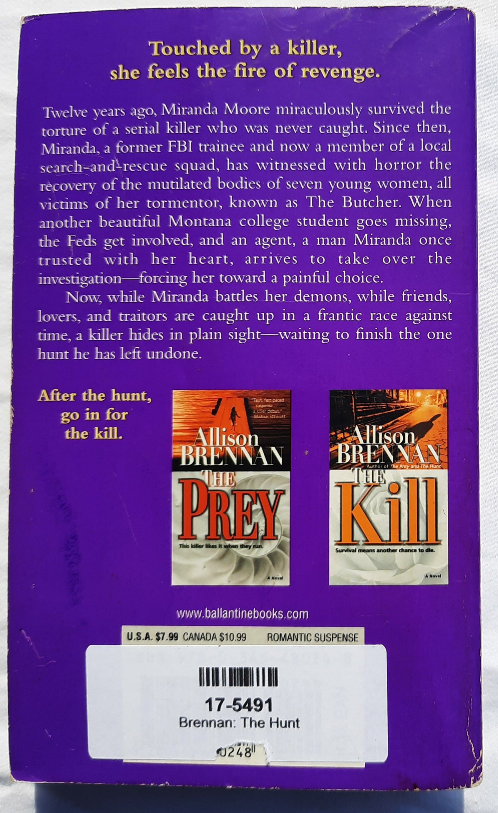 The Hunt by Allison Brennan (Predator Trilogy #2, Good, 2009, Pbk, 401 pages, Ballantine Books)