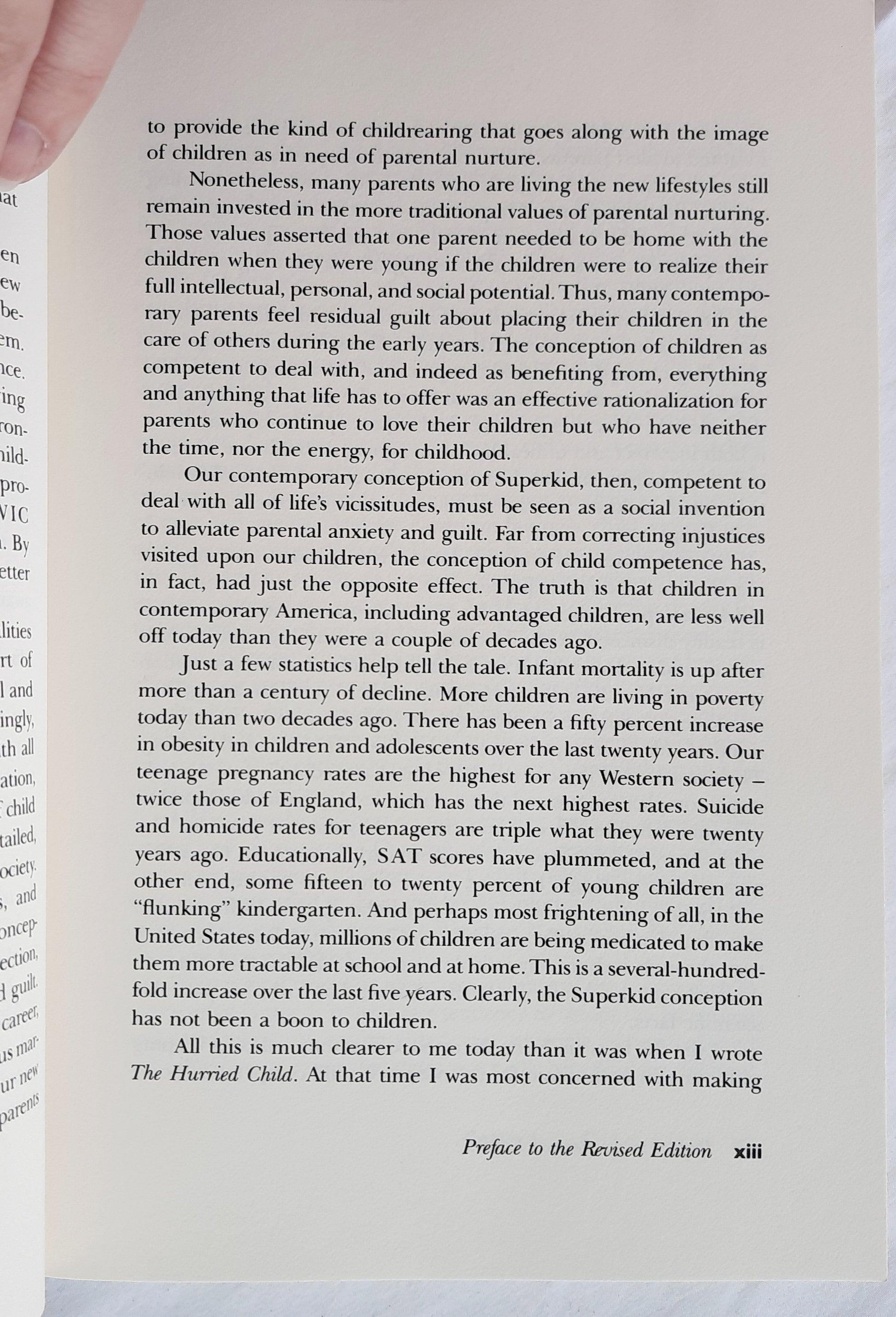 Now Dr. Elkind has thoroughly revised this enormously successful book to debunk the notion of ”competence” that has children racing off to early enrichment programs, burdened by the pressure to achieve, and coming home alone to an empty house after school. He sees ”competence” as a notion meant to rationalize the needs of adults, not to serve the genuine needs of kids, a notion that has fourth graders dieting to fit into designer jeans and children of divorce asked to be the confidants of their troubled parents.