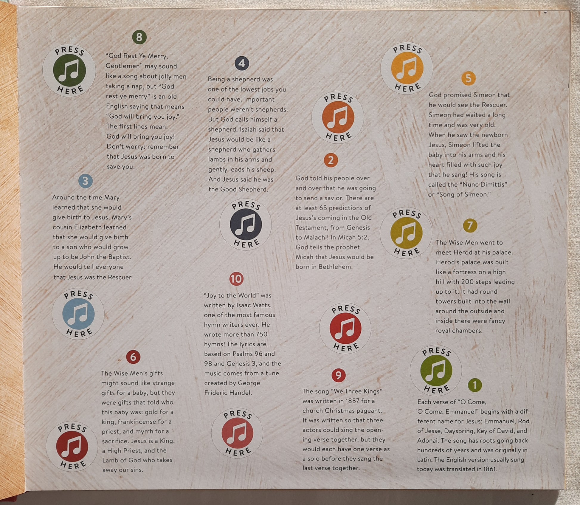 - Features 16 buttons that activate 20 seconds of classic Christmas music or narration by award-winning British actor David Suchet