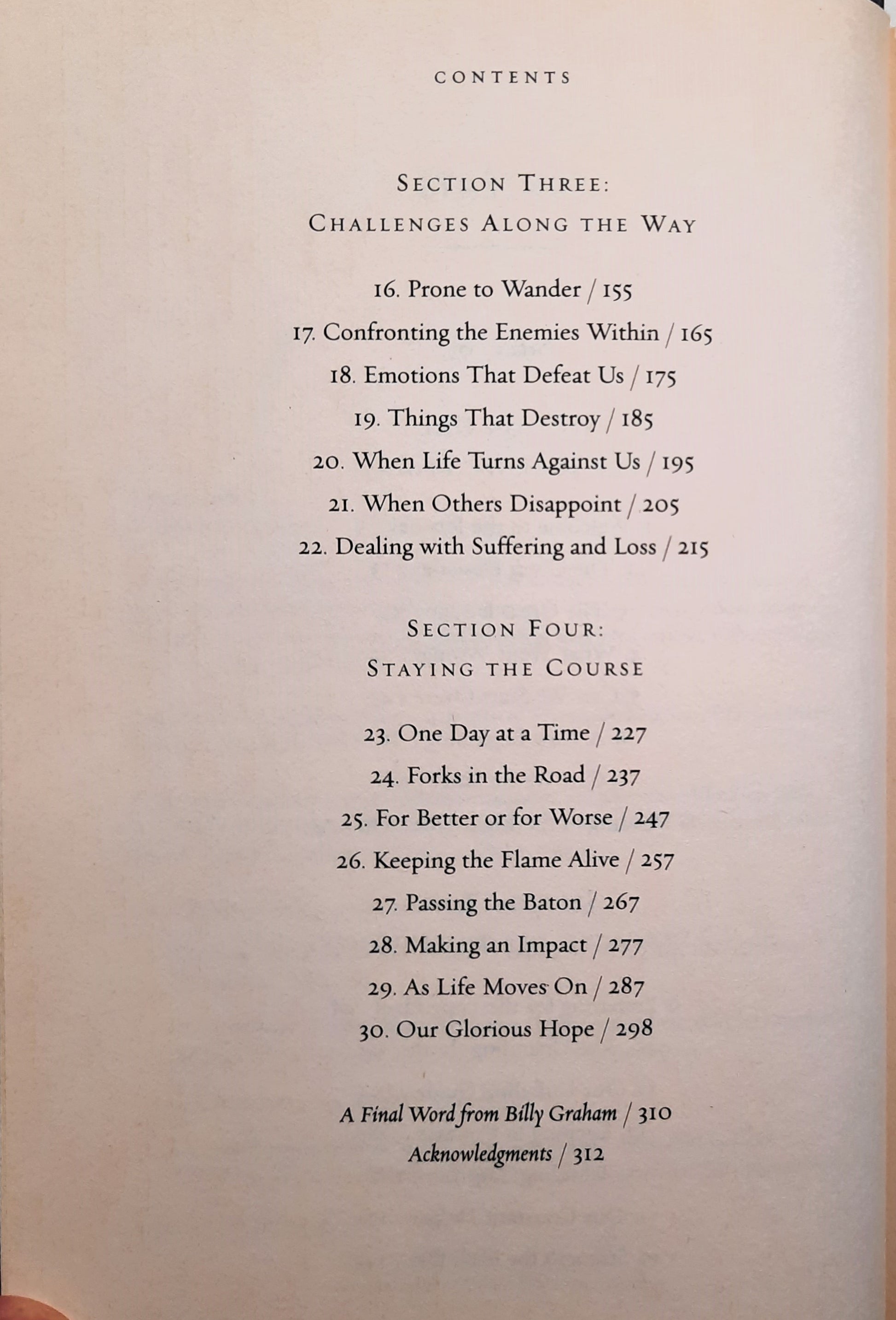 Chapter by chapter, Graham leads us on a journey in faith. We learn about God and his purpose for our lives; who Jesus is and what he has done for us. We are reminded of the things God has given us to live successfully: the Bible, the privilege of prayer, fellowship and the church, and the Holy Spirit. We learn to deal with challenges along the way: temptation; wrong thoughts and motives; emotions that can defeat us; habits that destroy our spirit, and what to do when life turns against us. And we are given practical advice on knowing God's will, making right decision, strengthening our marriages, being wise parents, and using our gifts to share Christ with others.