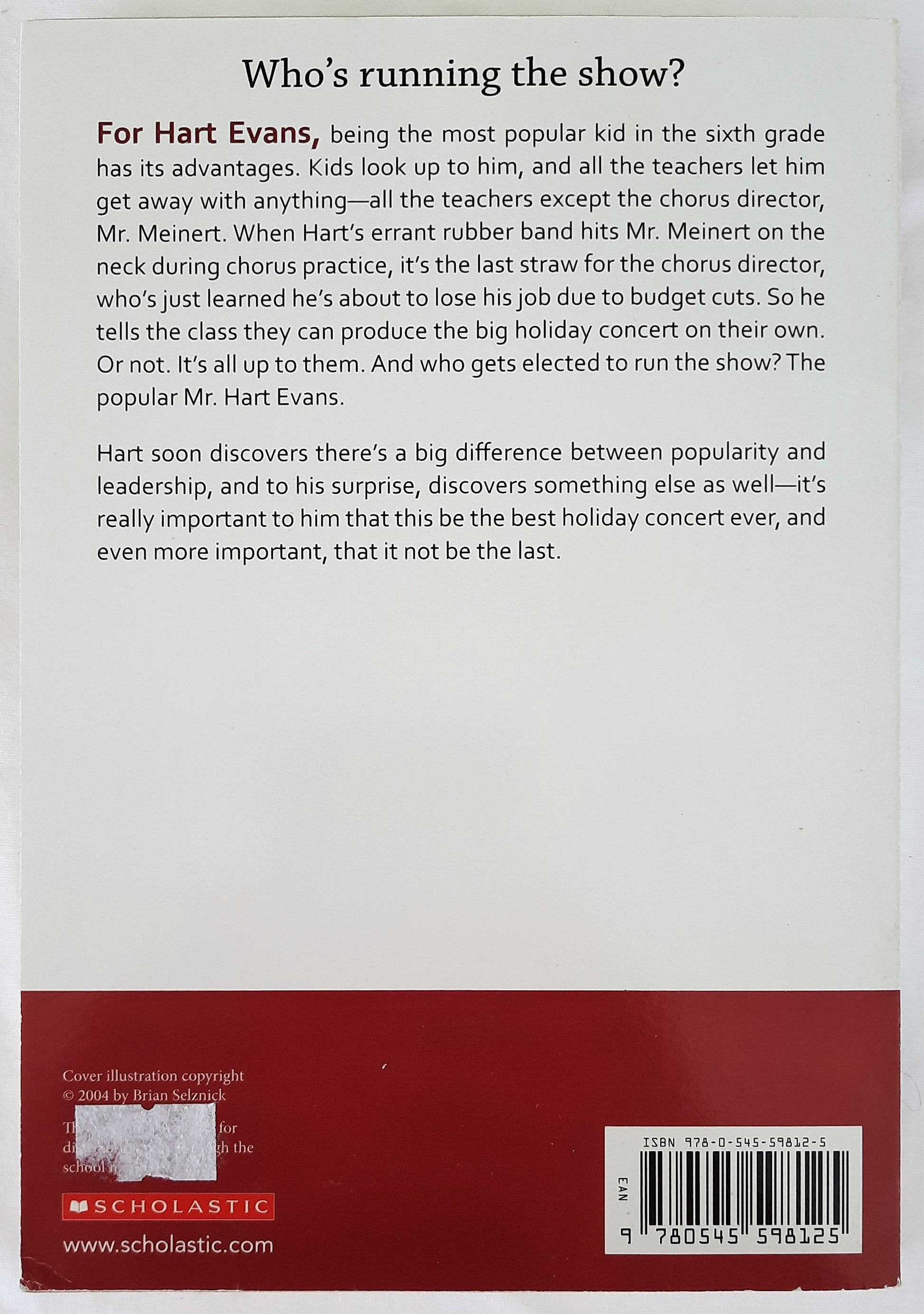 For Hart Evans, being the most popular kid in sixth grade has its advantages. Kids look up to him, and all the teachers let him get away with anything -- all the teachers except the chorus director, Mr. Meinert. When Hart's errant rubber band hits Mr. Meinert on the neck during chorus practice, it's the last straw for the chorus director, who's just learned he's about to lose his job due to budget cuts. So he tells the class they can produce the big holiday concert on their own. Or not. It's all up to them. And who gets elected to run the show? The popular Mr. Hart Evans.
