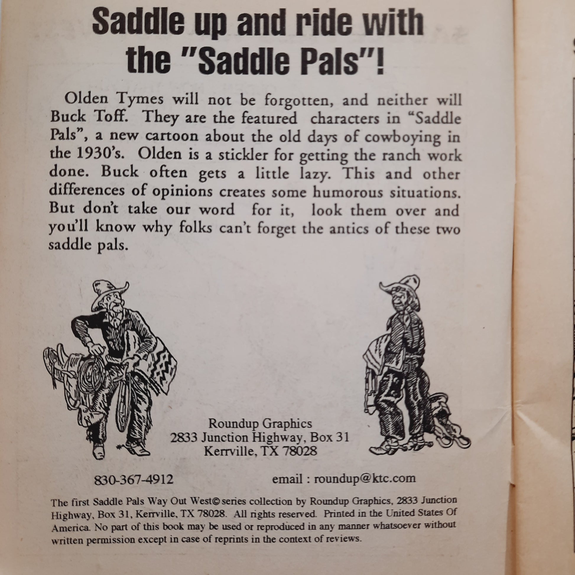 Saddle Pals Way Out West by Graham Ward (Good, Pbk, 30 pages, Roundup Graphics/Kerrville Daily Times)
