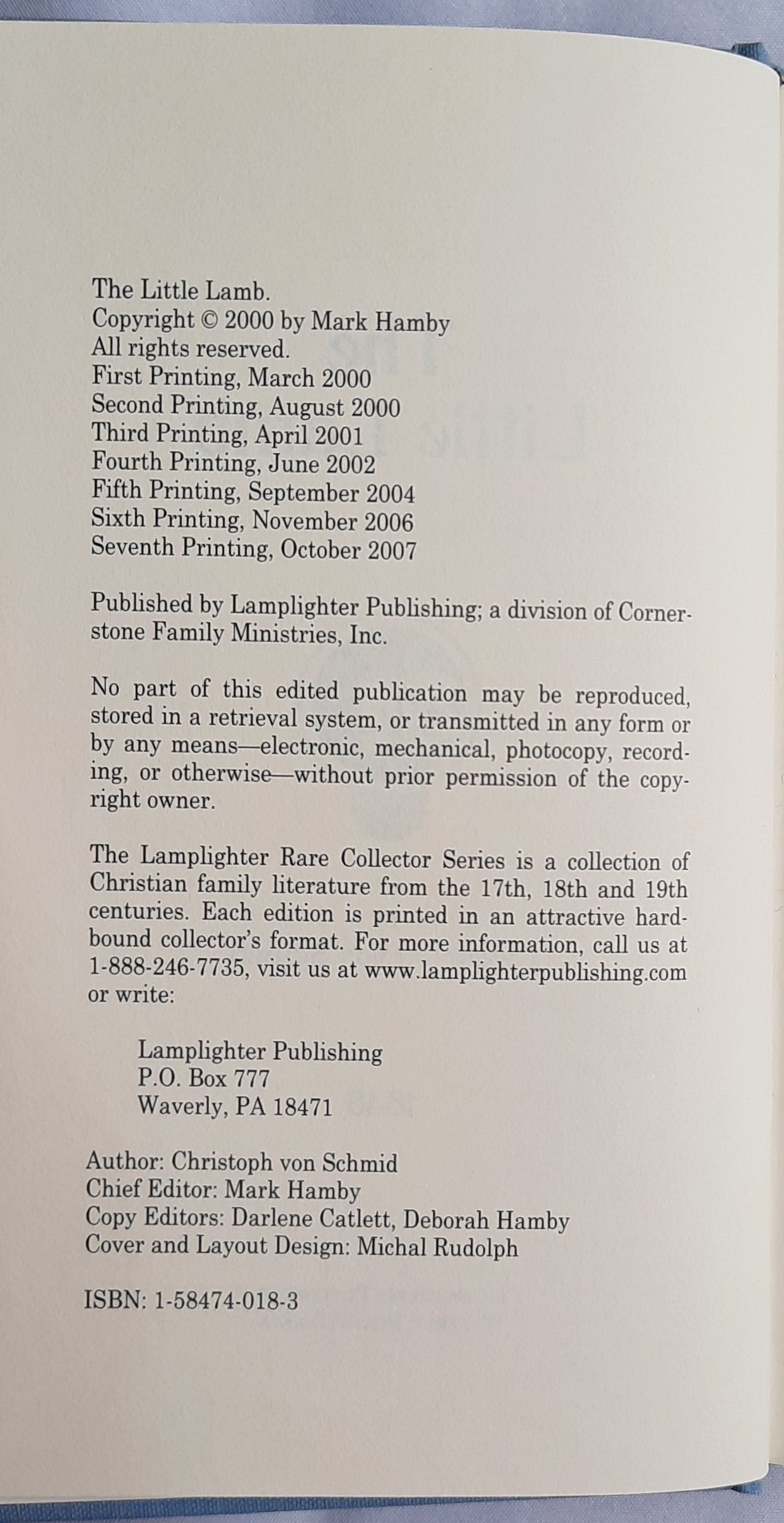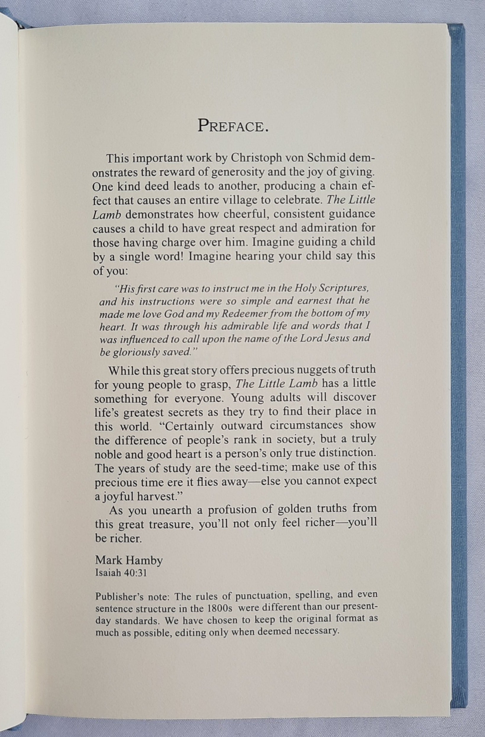 The Little Lamb by Christoph von Schmid (Like new, 2007, HC, 140 pages, Lamplighter Publishing)