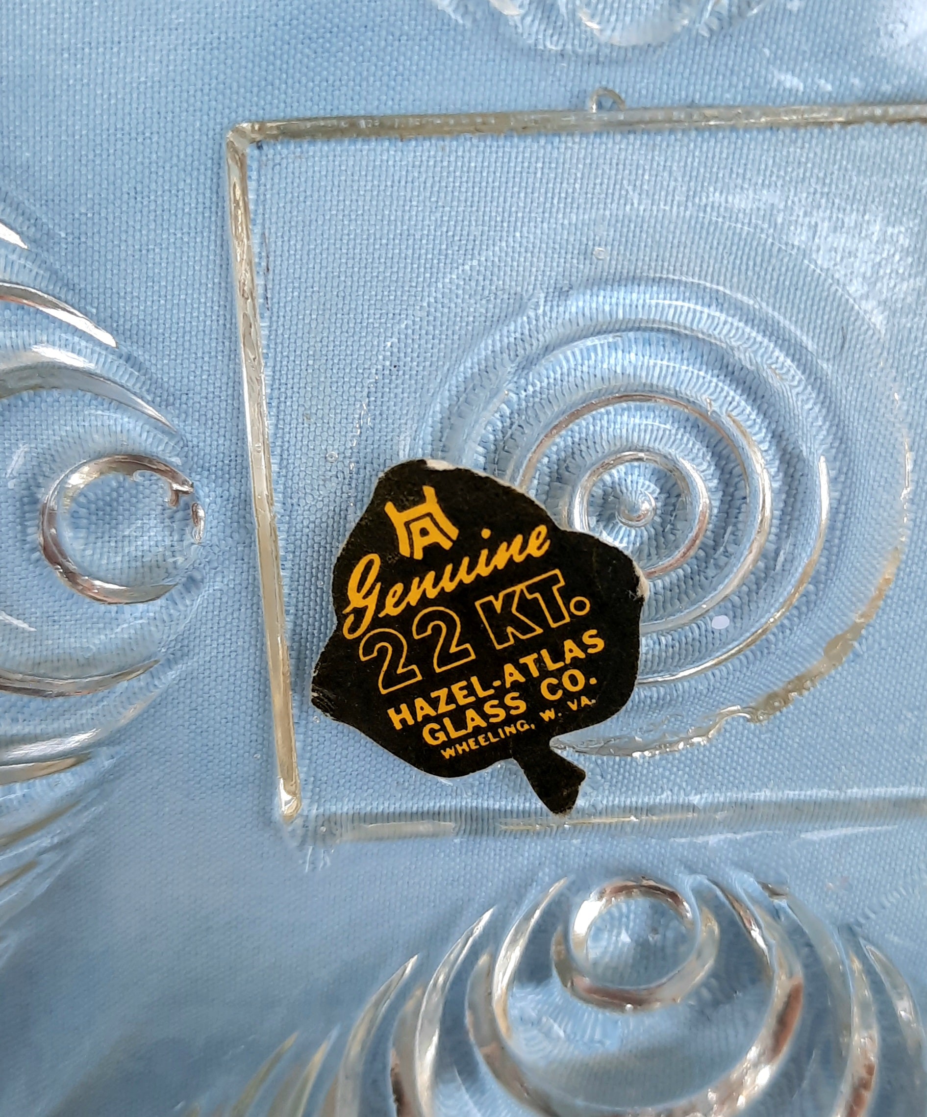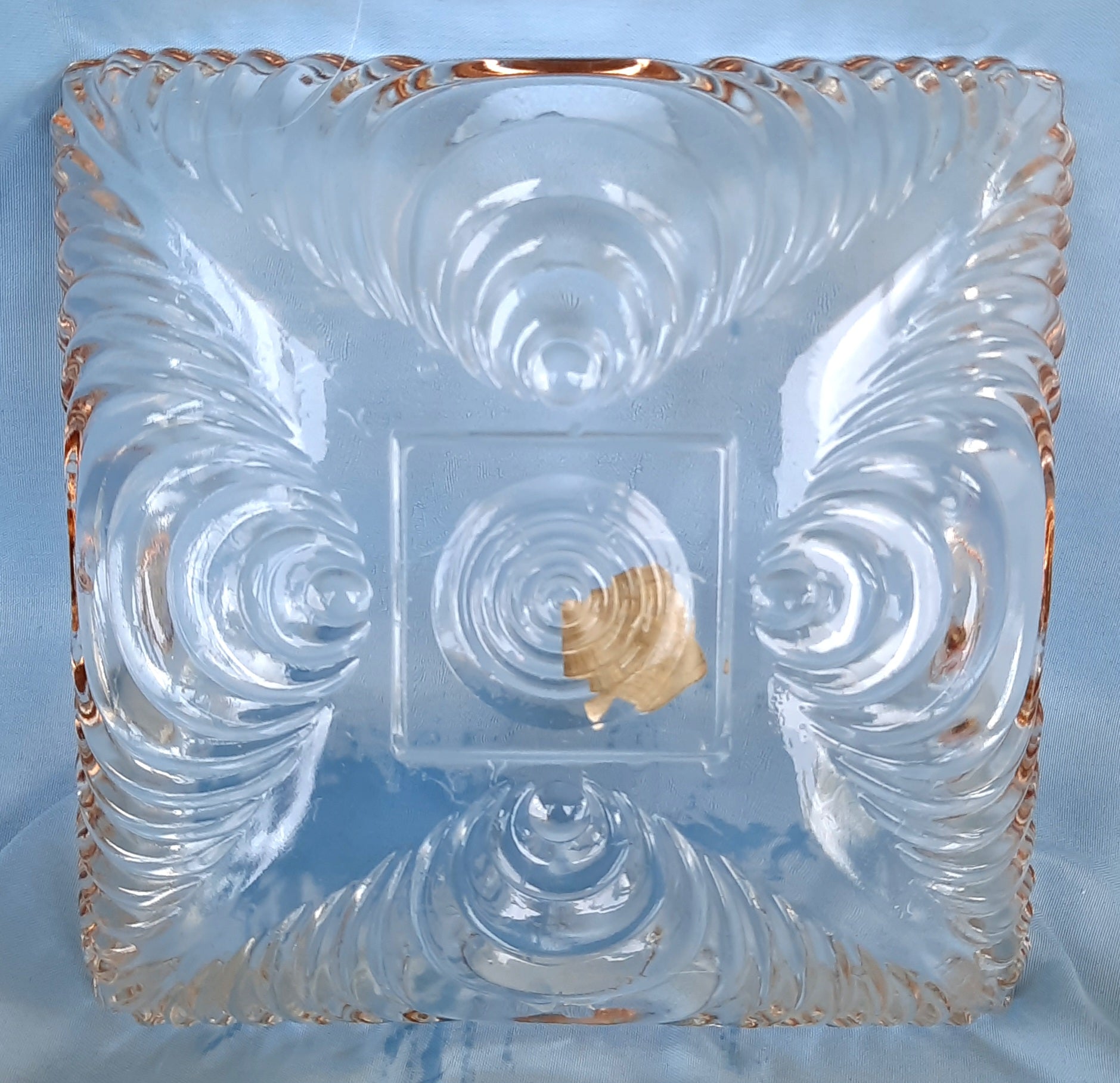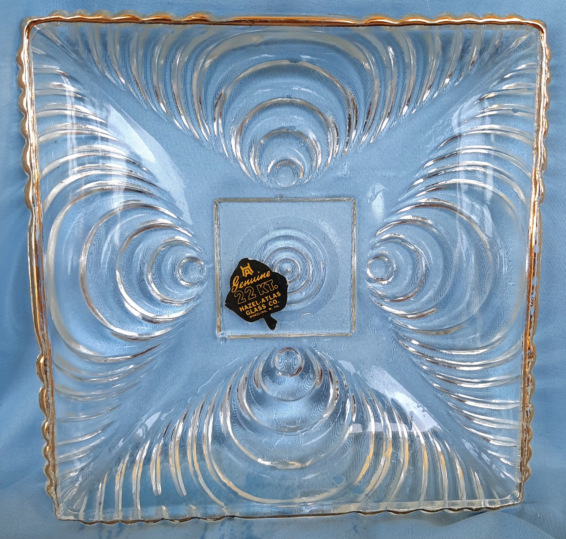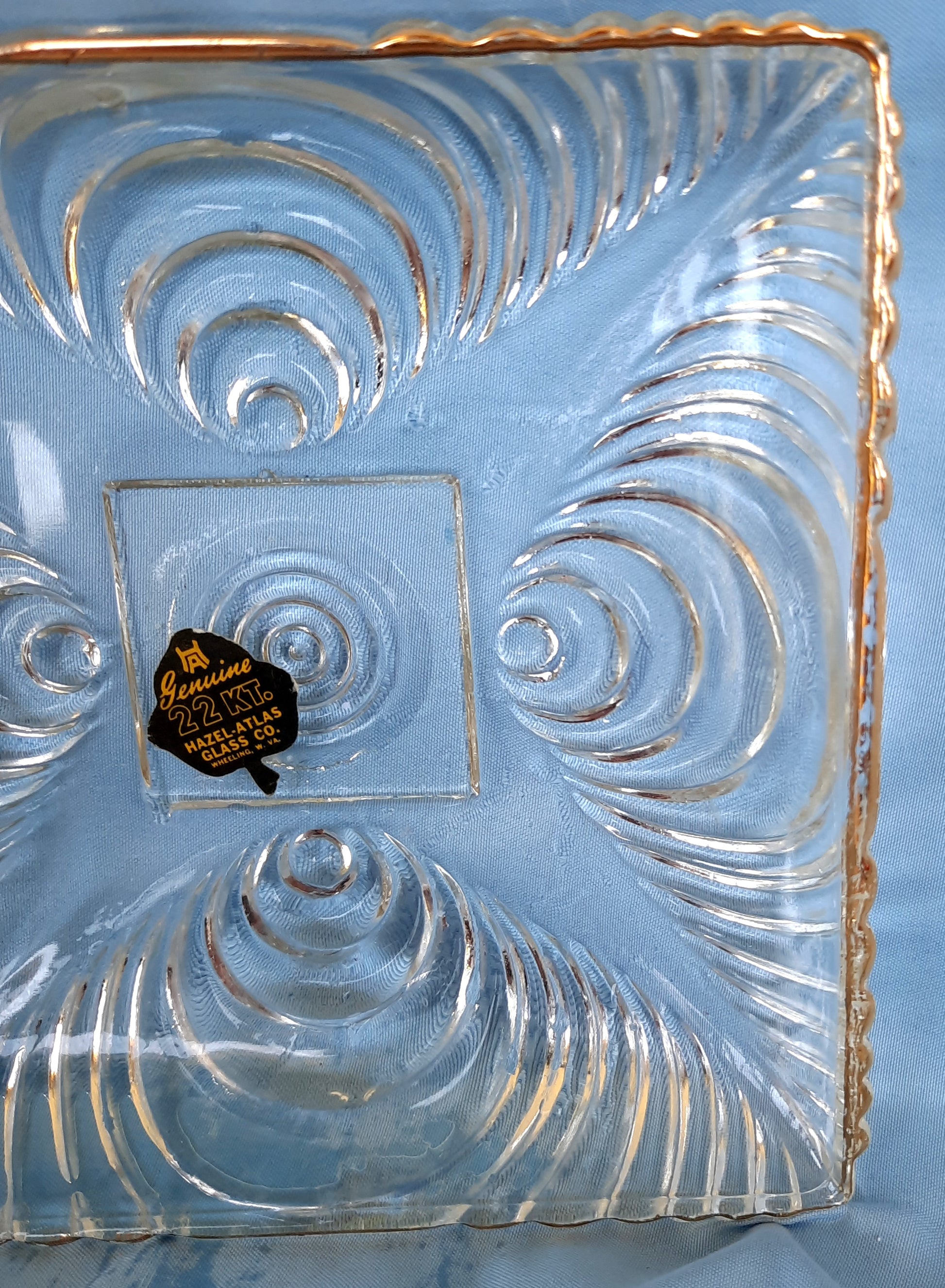 Hazel-Atlas Glass Company 6x6 Trinket/Candy Tray with 22 Kt Gold Trim 1930s - Near Mint Condition