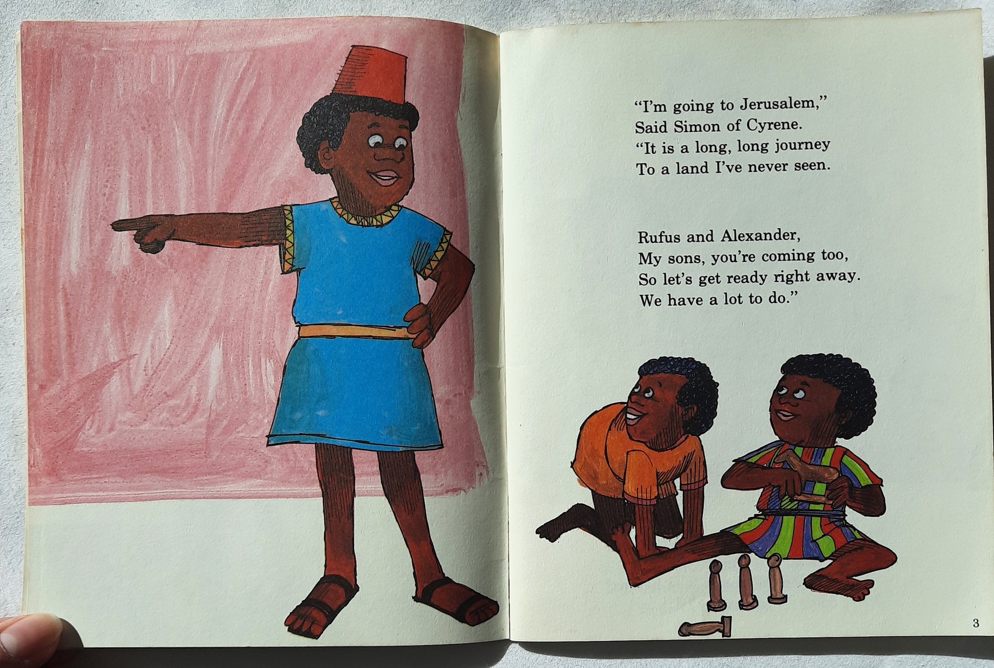 Luke 23:26 and Mark 15:21 for children retold in verse form appropriate for elementary age children.