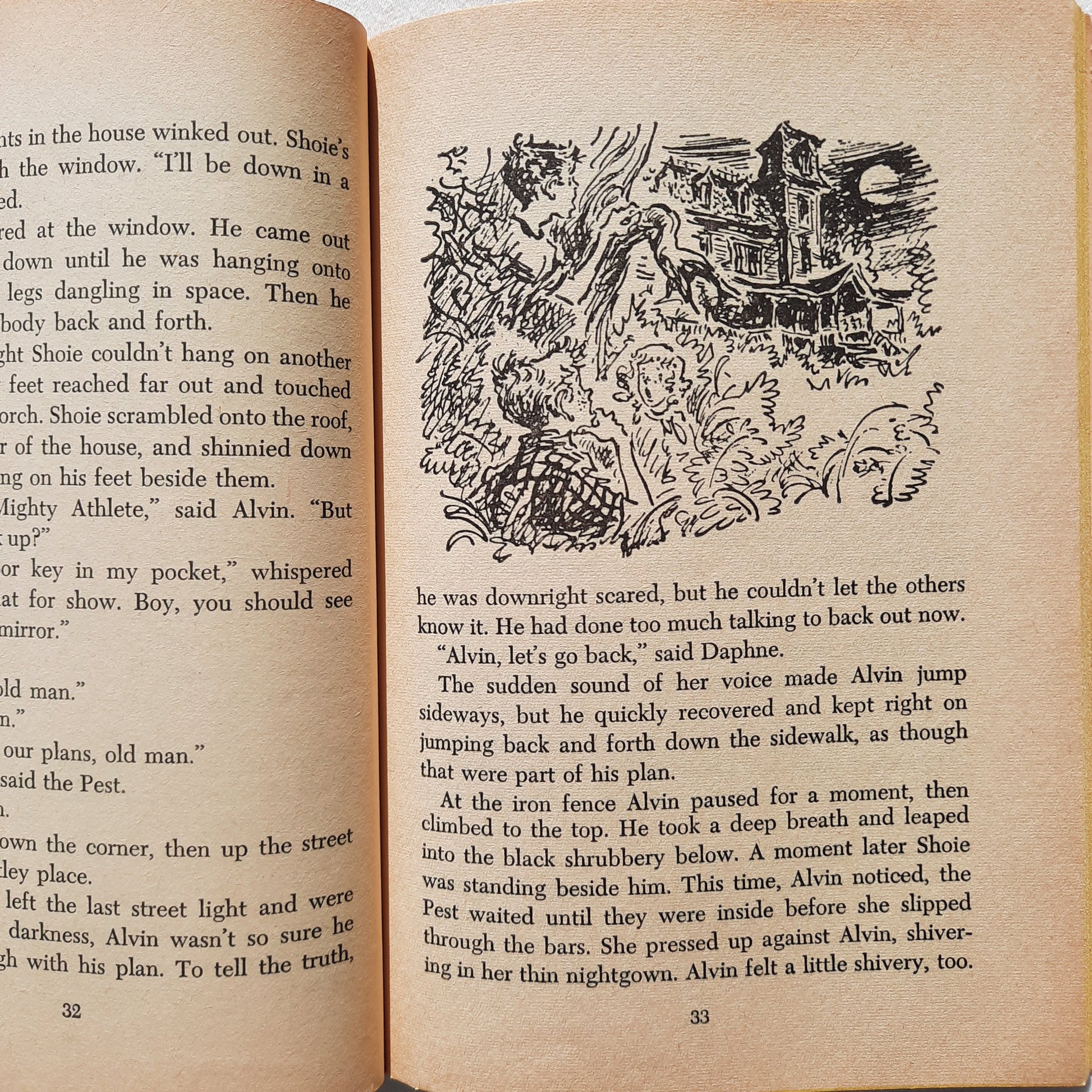 The hint of a mystery surrounding the old Huntley place is all Alvin needs to launch a new series of inventions which bring extraordinary results. His remarkable inventing bench becomes the scene of frenzied activity. With Shoie and the Pest, who always tags along, there is never a dull moment as Alvin unfolds the most brilliant plan of his career.
