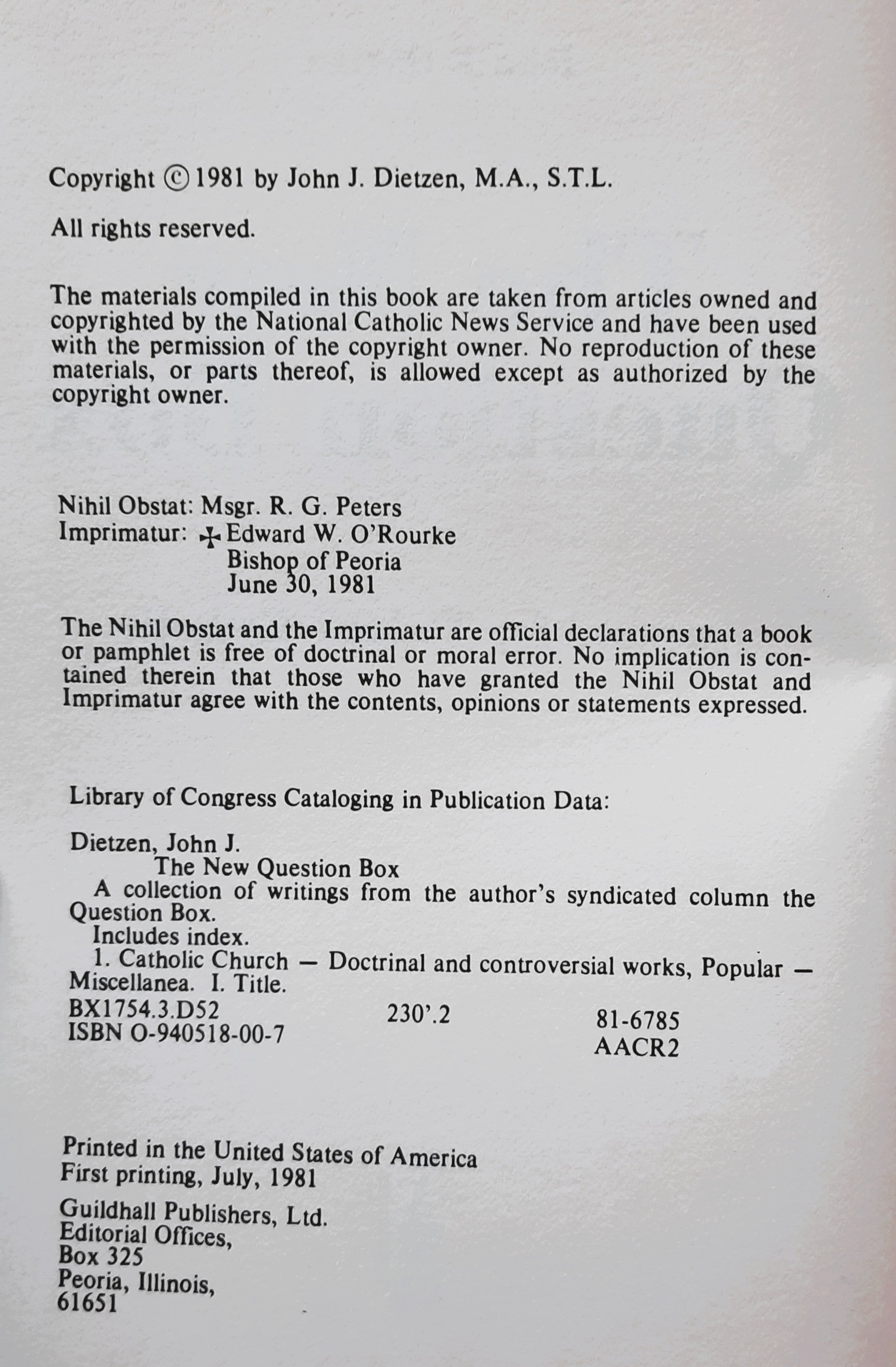 The New Question Box by John J. Dietzen (Good,1981, HC, 1352 pages, Guildhall Publications)