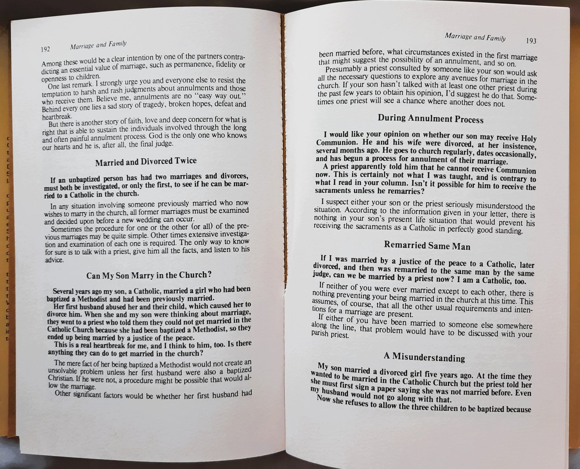A compilation of Faither Dietzen's column in the Catholic Press. The purpose of his column—and book compilations which followed, including “The New Question Box” first published by Guildhall in 1981 and the current 560-page “Catholic Q&A: All You Wanted to Know About Catholicism” (Crossroad)—was to help readers “recognize how our Catholic faith, in all its living expressions of worship, faith and service, can enhance (our) intimacy with God,” Father Dietzen wrote in 1997.