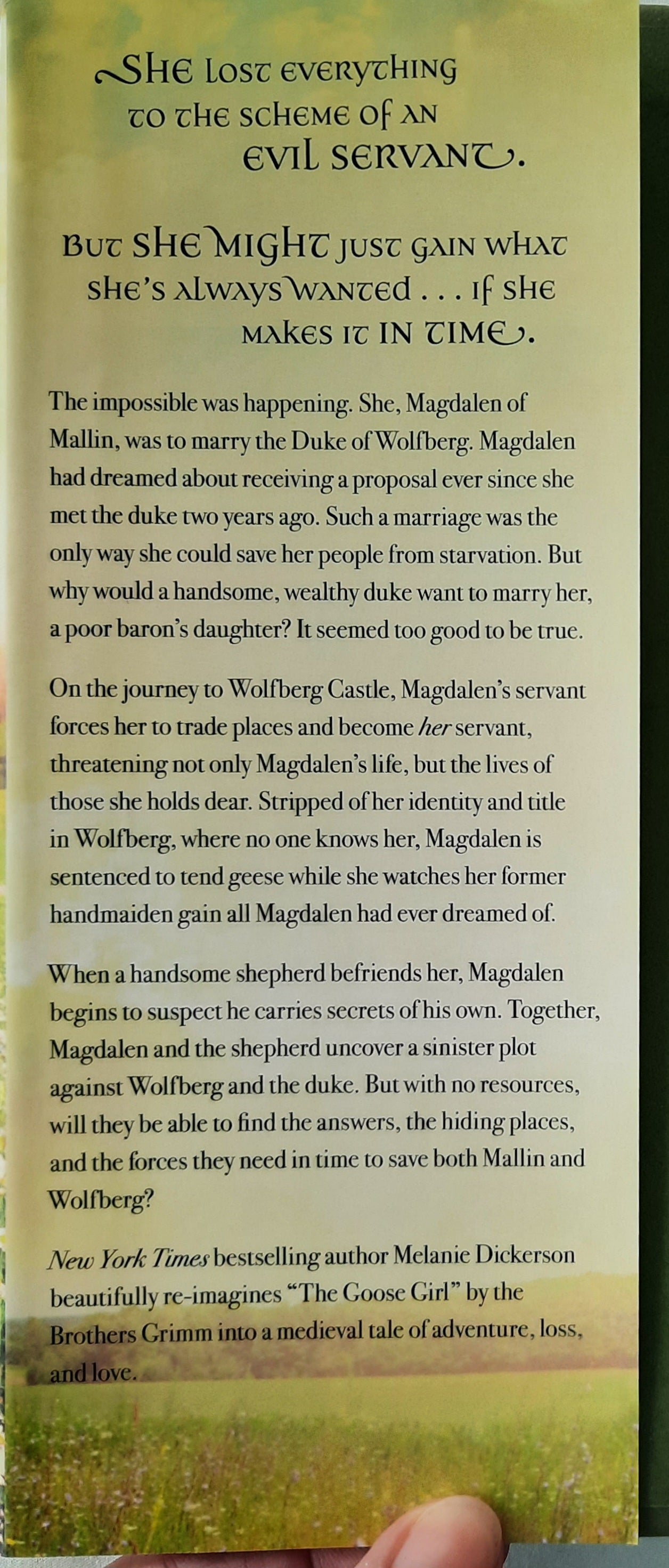 On the journey to Wolfberg Castle, Magdalen’s servant forces her to trade places and become her servant, threatening not only Magdalen’s life, but the lives of those she holds dear. Stripped of her identity and title in Wolfberg, where no one knows her, Magdalen is sentenced to tend geese while she watches her former handmaiden gain all Magdalen had ever dreamed of.