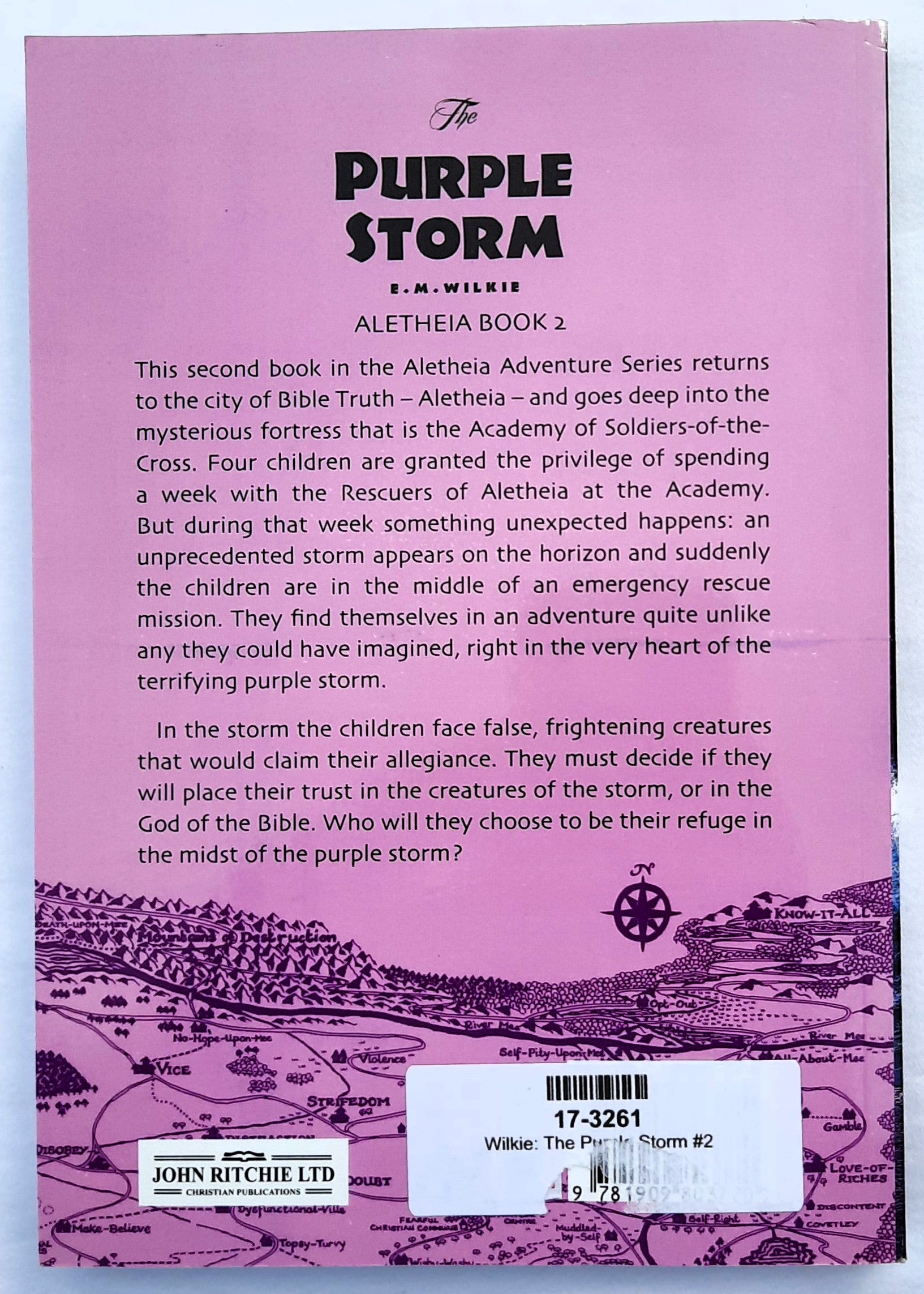 Four children are granted the privilege of spending a week with the Rescuers of Aletheia at the Academy. But during that week something unexpected happens: an unprecedented storm appears on the horizon and suddenly the children are in the middle of an emergency rescue mission. They find themselves in an adventure quite unlike any they could have imagined, right in the very heart of the terrifying purple storm. In the storm the children face false, frightening creatures that would claim their allegiance. They must decide if they will place their trust in the creatures of the storm, or in the God of the Bible. Who will they choose to be their refuge in the midst of the purple storm?