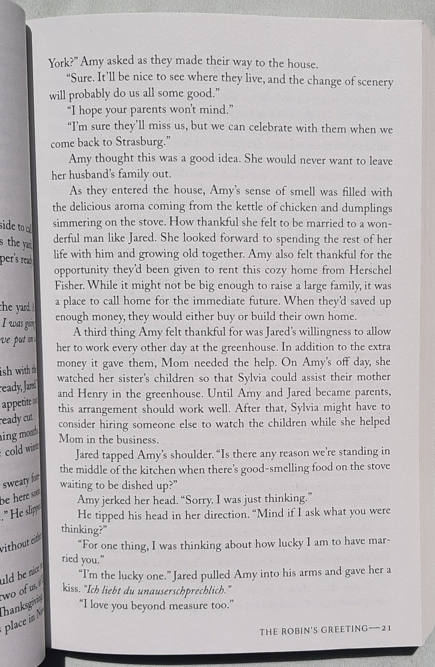 For the past two years Belinda King, along with her two grown daughters and teenage son, has been struggling to keep the family greenhouse running. Despite disconcerting events that have threatened to put them out of business, they have survived two growing seasons. And now Belinda can focus on the two suitors vying for her attention. Herschel Fisher, a new acquaintance, makes her feel relaxed, and Monroe Esh, an admirer from her past, reminds her of her youth.
