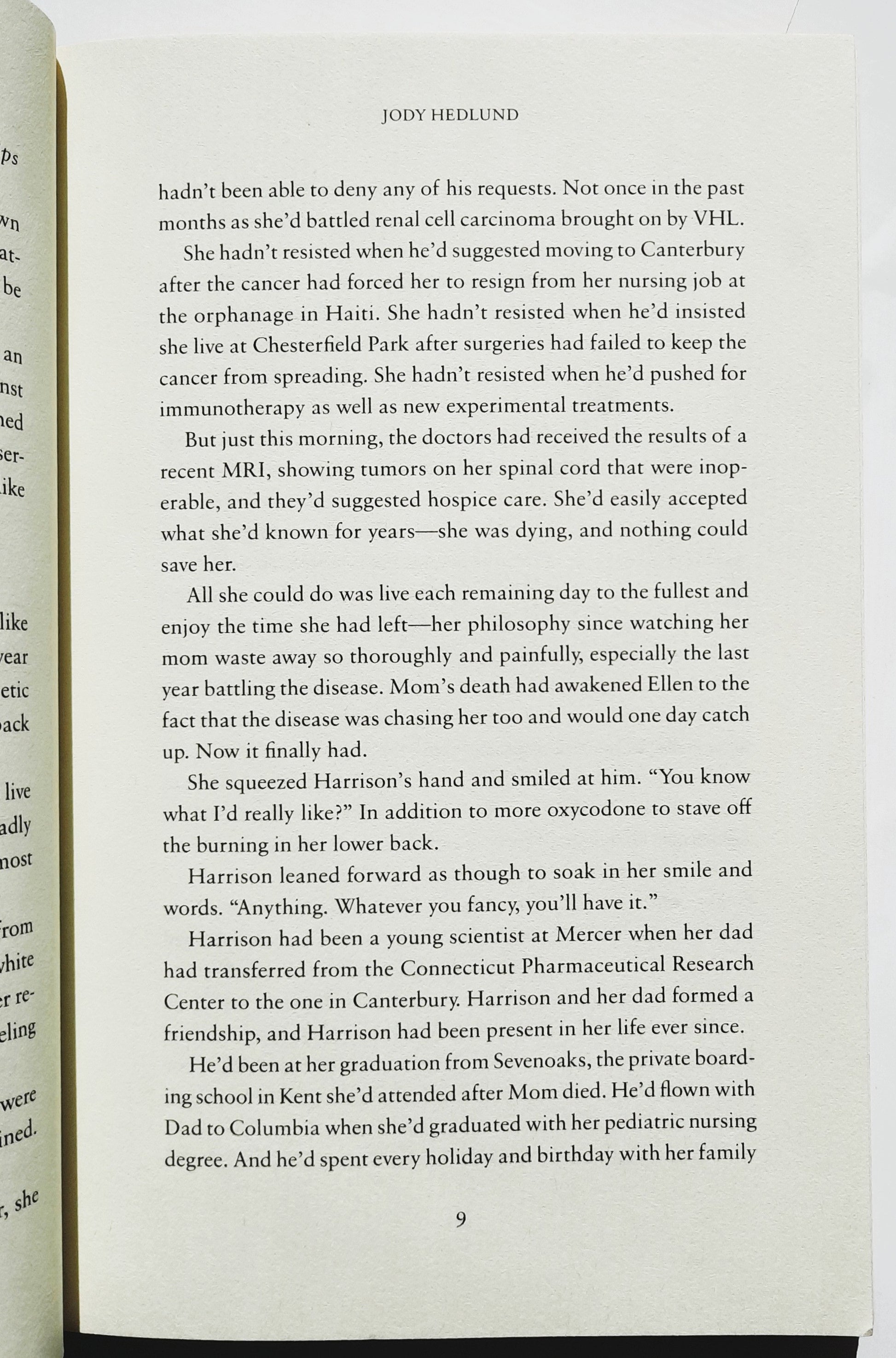 In the last stages of a genetic disease, Ellen Creighton has decided to live out her remaining days at the estate of her longtime friend Harrison Burlington. Harrison cares deeply for Ellen, but as a wheelchair-bound paraplegic, he's never allowed himself to get serious in a relationship. However, he's desperately trying to save her by finding the holy water that is believed to heal any disease.