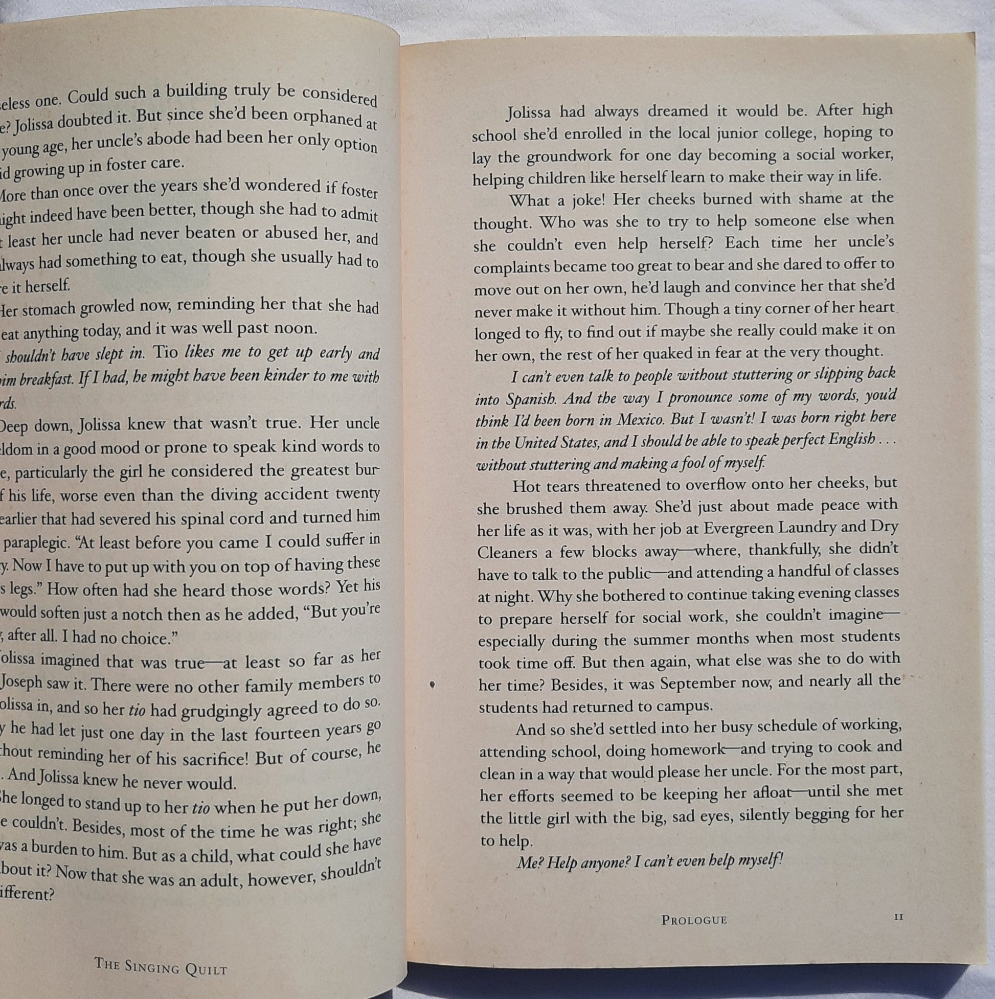 Jolissa Montoya believes God is calling her to work with the disadvantaged children in her inner-city neighborhood. There’s only one problem: The children wouldn’t be able to understand her. Jolissa suffers from a speech impediment and has a thick accent because Spanish is her first language. Ridiculed through much of her youth, she is quite shy and reticent to speak. She is convinced that what God has spoken to her heart is impossible. Impossible, that is, until one day when she shares her concerns with a confidante who shows her a quilt―a quilt that depicts the life of a courageous woman. Can another woman’s courage move her to try the impossible to step out and follow God wherever He leads her?