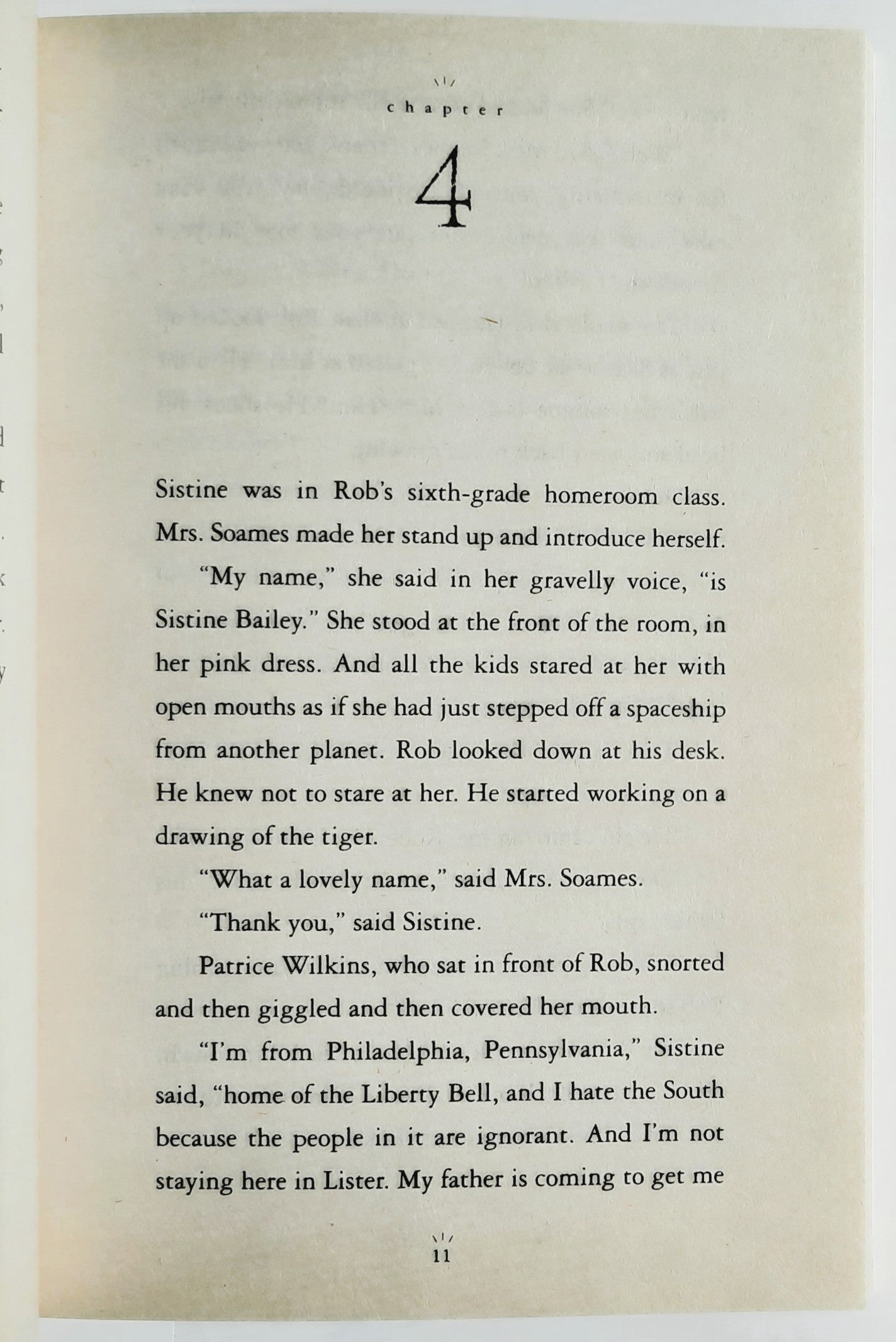 Walking through the misty Florida woods one morning, twelve-year-old Rob Horton is stunned to encounter a tiger—a real-life, very large tiger—pacing back and forth in a cage. What’s more, on the same extraordinary day, he meets Sistine Bailey, a girl who shows her feelings as readily as Rob hides his. As they learn to trust each other, and ultimately, to be friends, Rob and Sistine prove that some things—like memories, and heartache, and tigers—can’t be locked up forever. Featuring a cover illustration by Stephen Walton.