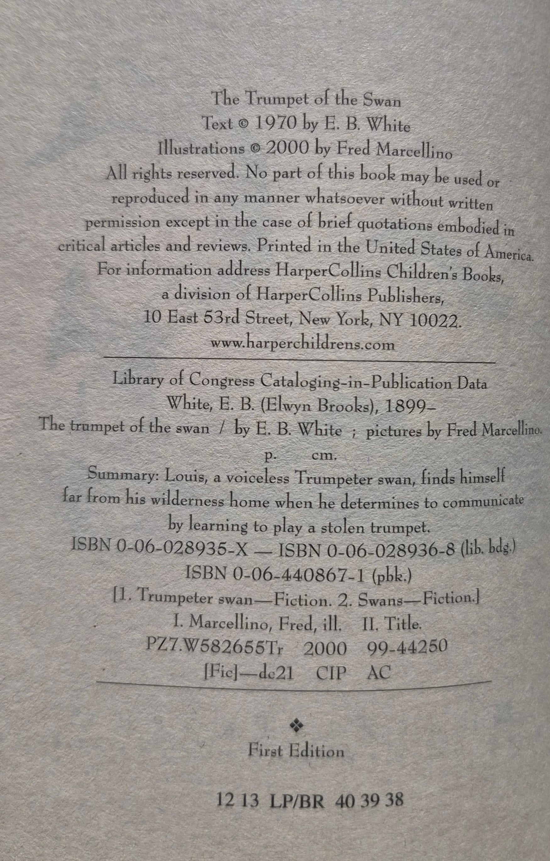 The Trumpet of the Swan by E. B. White (Like new, 2000, Pbk, 252 pages, HarperTrophy)