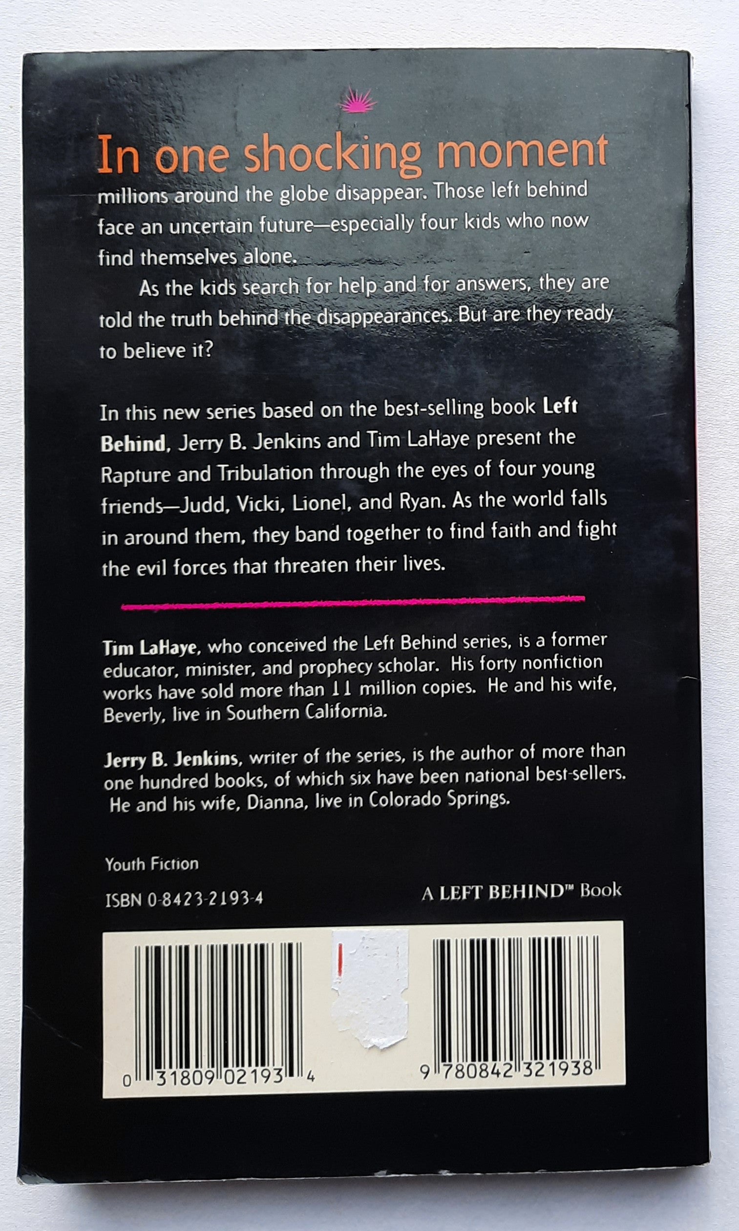 In one shocking moment millions around the globe disappear. Those left behind face an uncertain future—especially four kids who now find themselves alone.As the kids search for help and for answers, they are told the truth behind the disappearances. But are they ready to believe it?