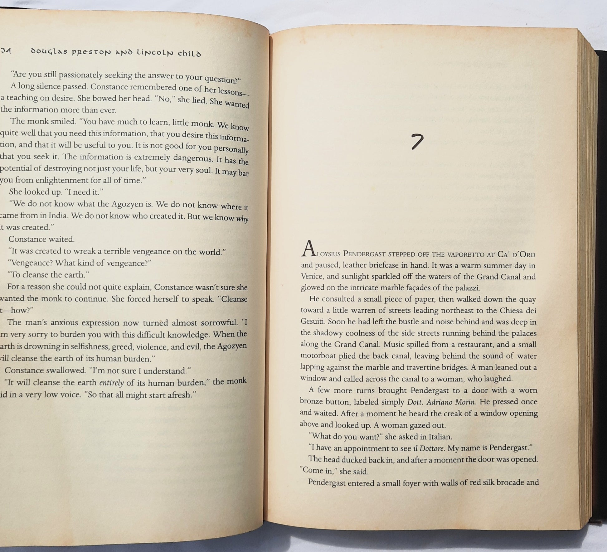 FBI Special Agent Pendergast is taking a break from work to take Constance on a whirlwind Grand Tour, hoping to give her closure and a sense of the world that she's missed. They head to Tibet, where Pendergast intensively trained in martial arts and spiritual studies. At a remote monastery, they learn that a rare and dangerous artifact the monks have been guarding for generations has been mysteriously stolen. As a favor, Pendergast agrees to track and recover the relic. A twisting trail of bloodshed leads Pendergast and Constance to the maiden voyage of the Britannia, the world's largest and most luxurious ocean liner---and to an Atlantic crossing fraught with terror.