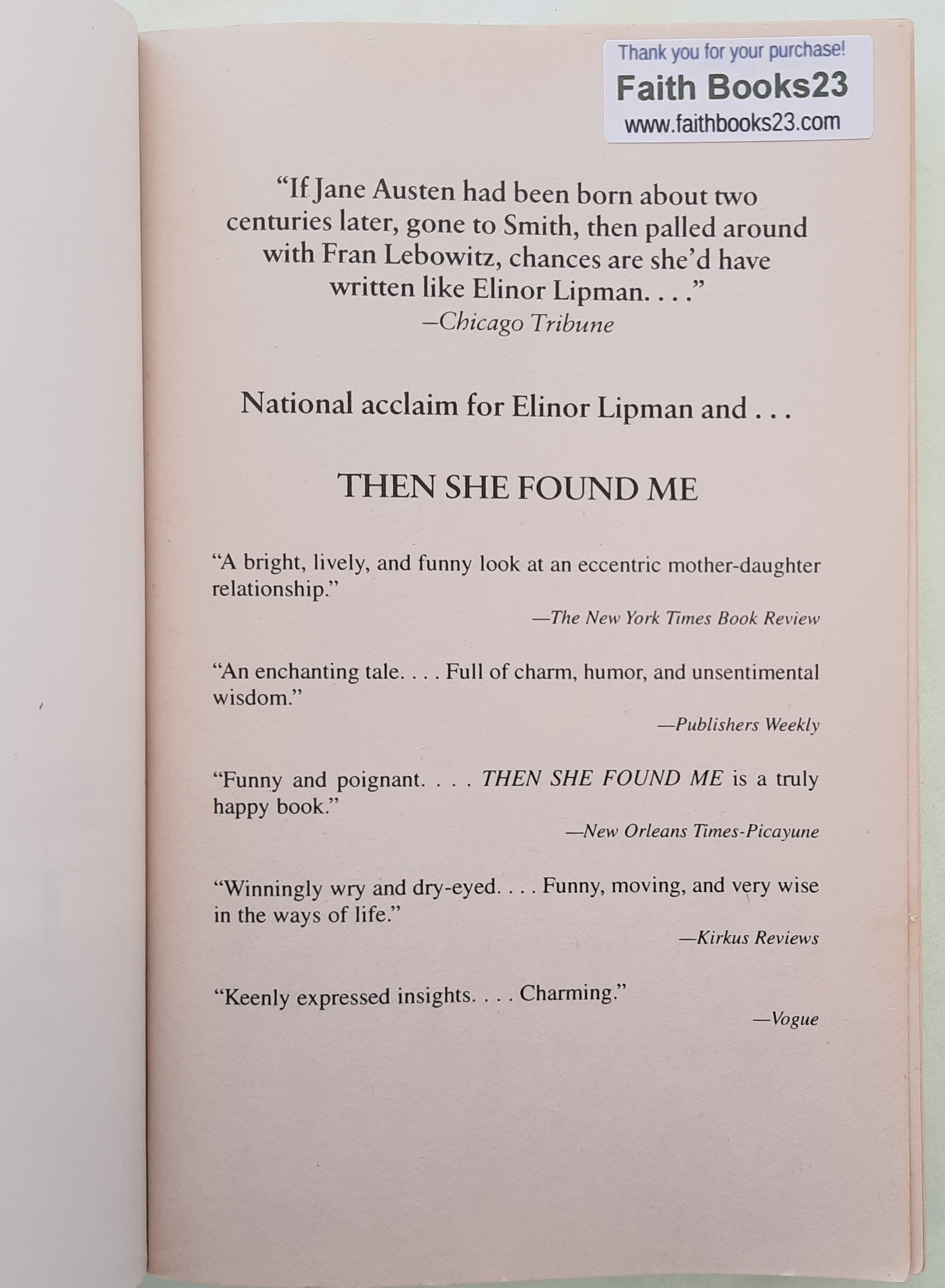 Then She Found Me by Elinor Lipman (Very good, 2008, Pbk, 307 pages, Washington Square Press)