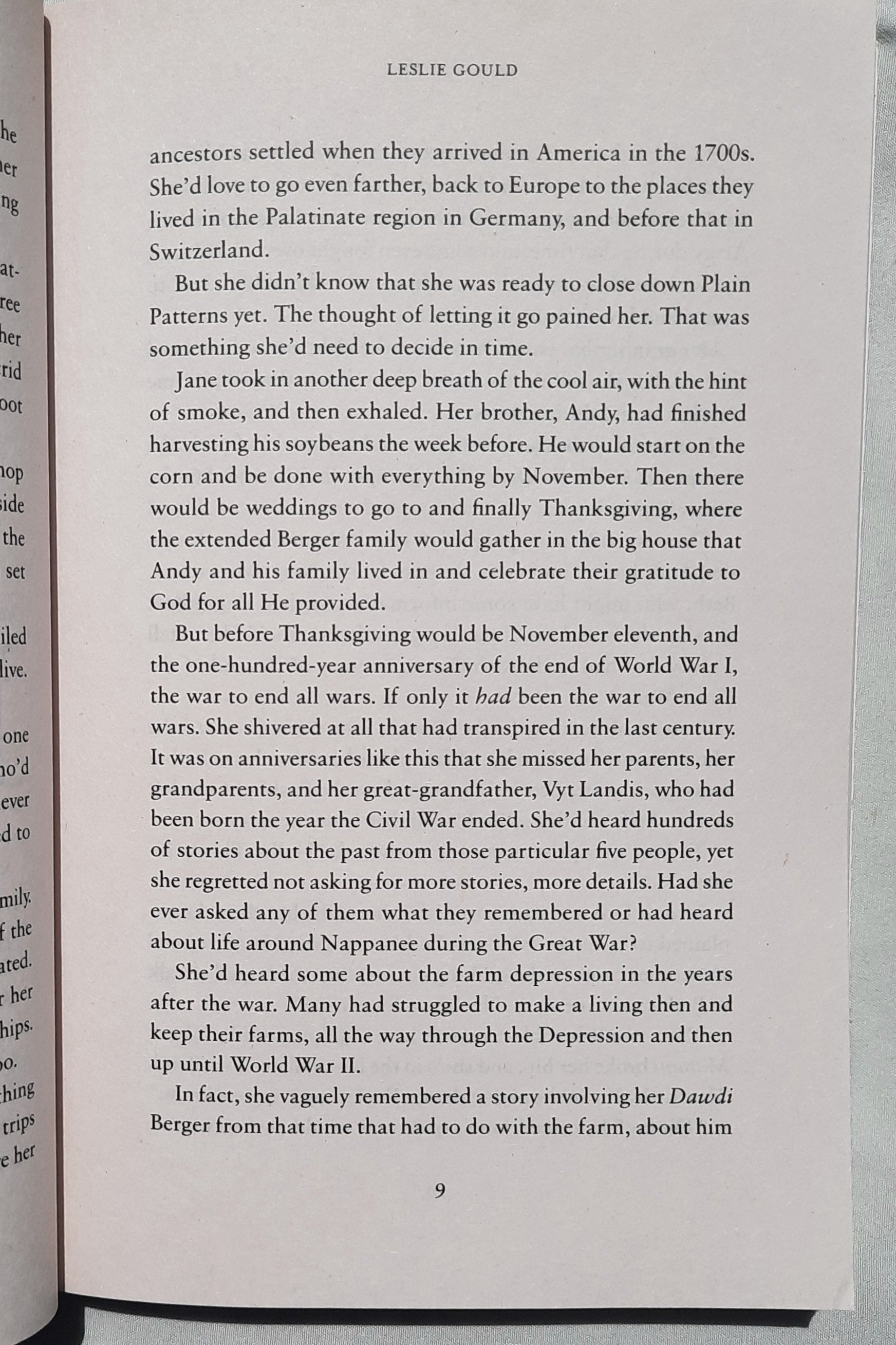 Yet she finds she can't turn away when Danielle's brother, Kenan, specifically asks for her help. She invites Danielle to visit Plain Patterns quilt shop with her, where the story of the plight of a WWI soldier and the girl he left behind resonates with both Tally and Danielle, but for different reasons.