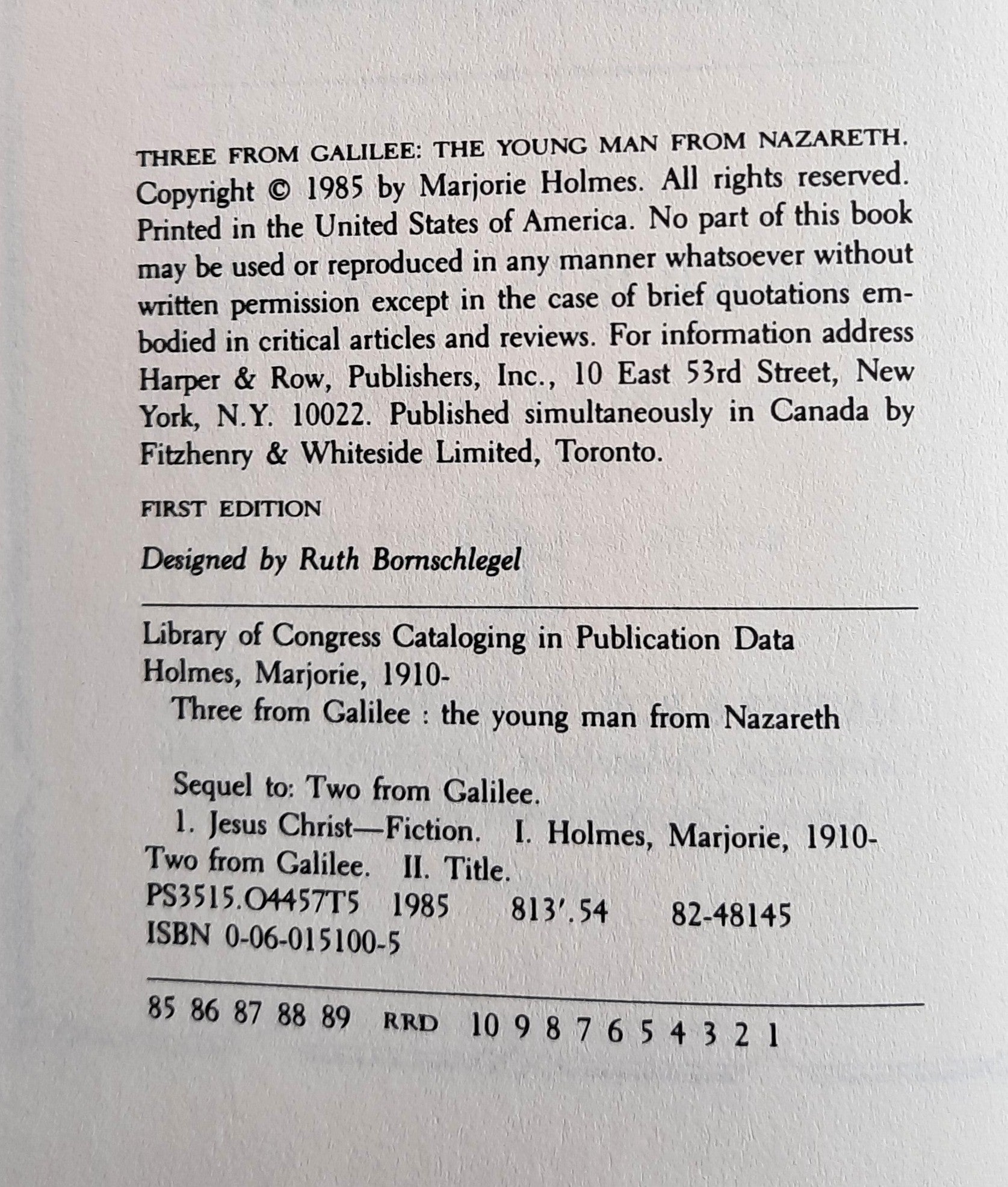Three From Galilee: The Young Man From Nazareth by Marjorie Holmes (Very Good, 1985, HC, 230 pages, Harper & Row)