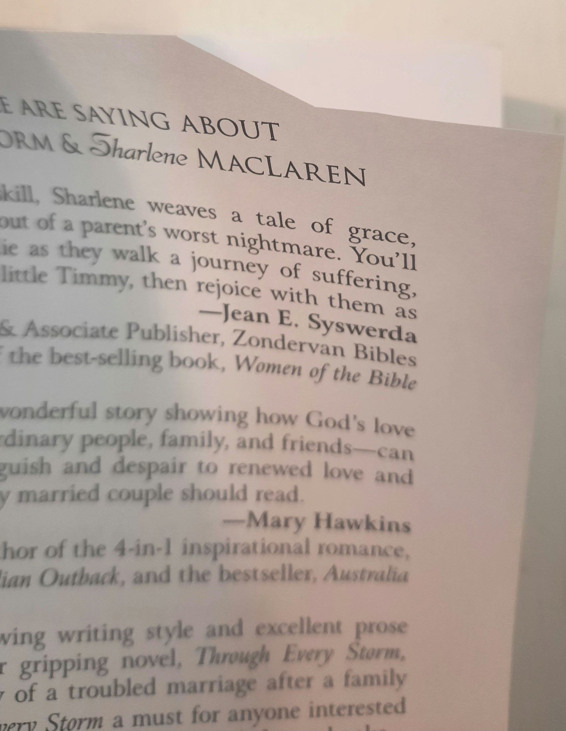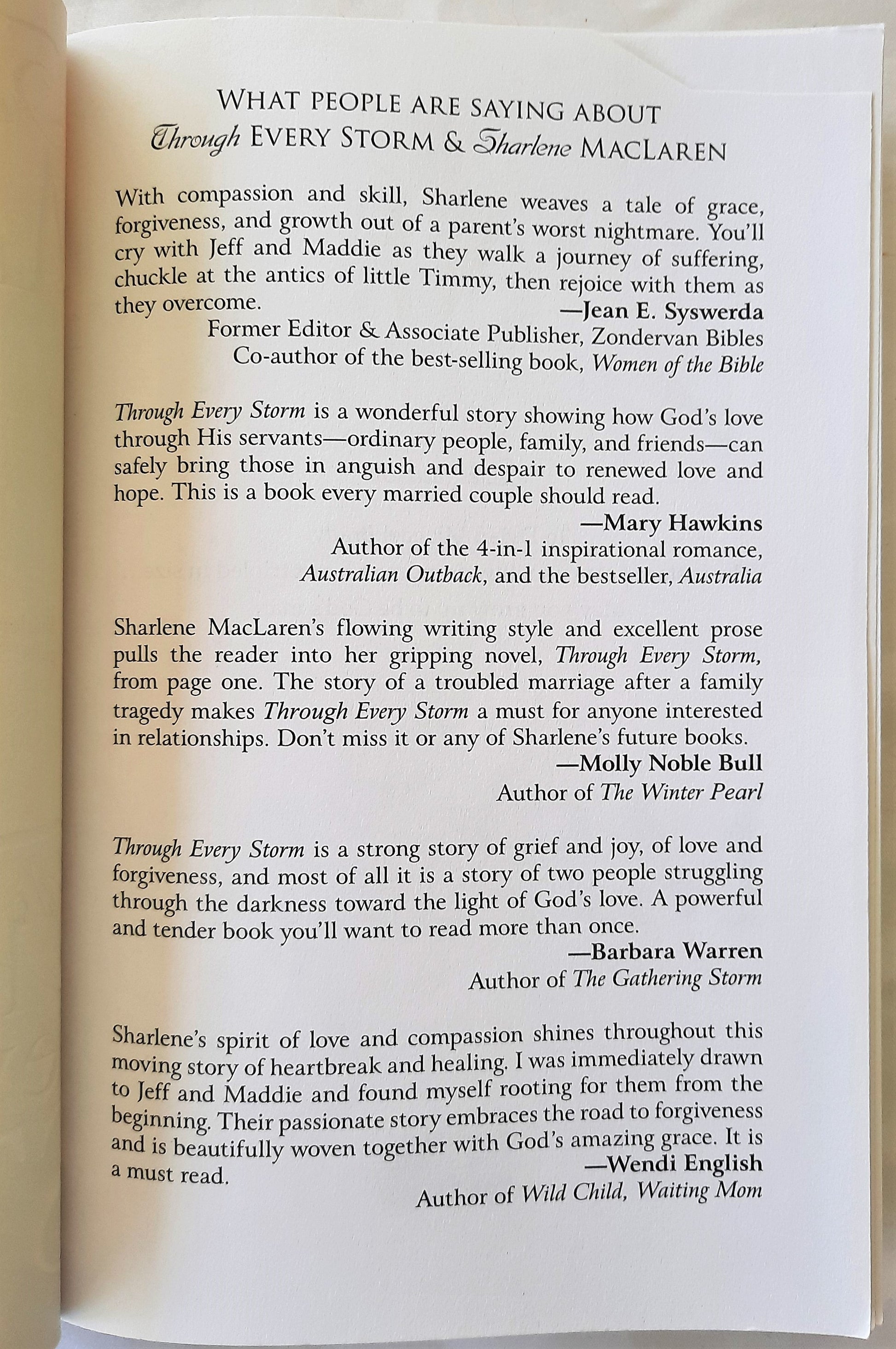 Through Every Storm by Sharlene MacLaren (Very good, 2006, Pbk, 368 pages, Whitaker House)