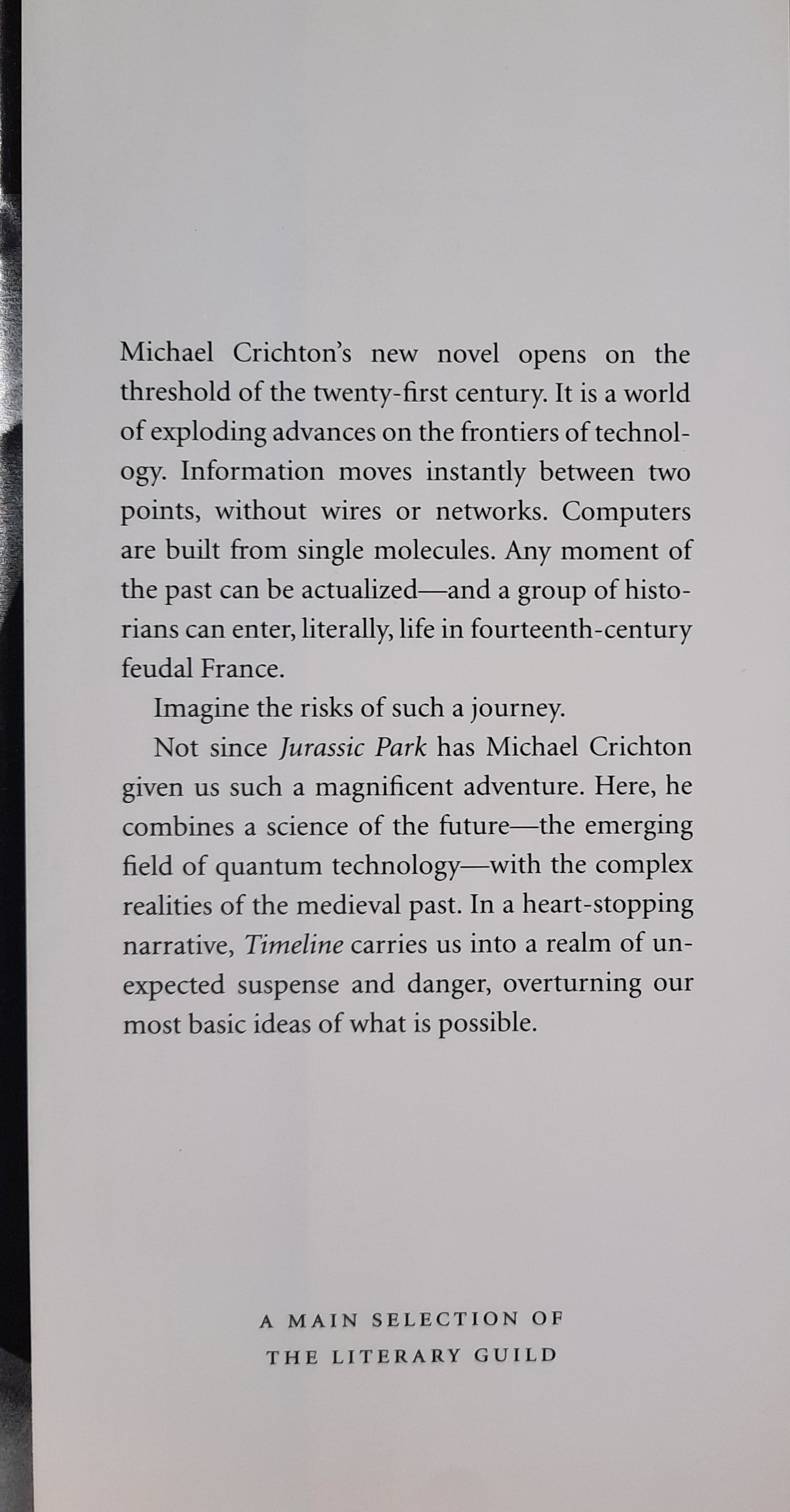 Not since Jurassic Park has Michael Crichton given us such a magnificent adventure. Here, he combines a science of the future -- the emerging field of quantum technology -- with the complex realities of the medieval past. In a heart-stopping narrative, Timeline carries us into a realm of unexpected suspense and danger, overturning our most basic ideas of what is possible.