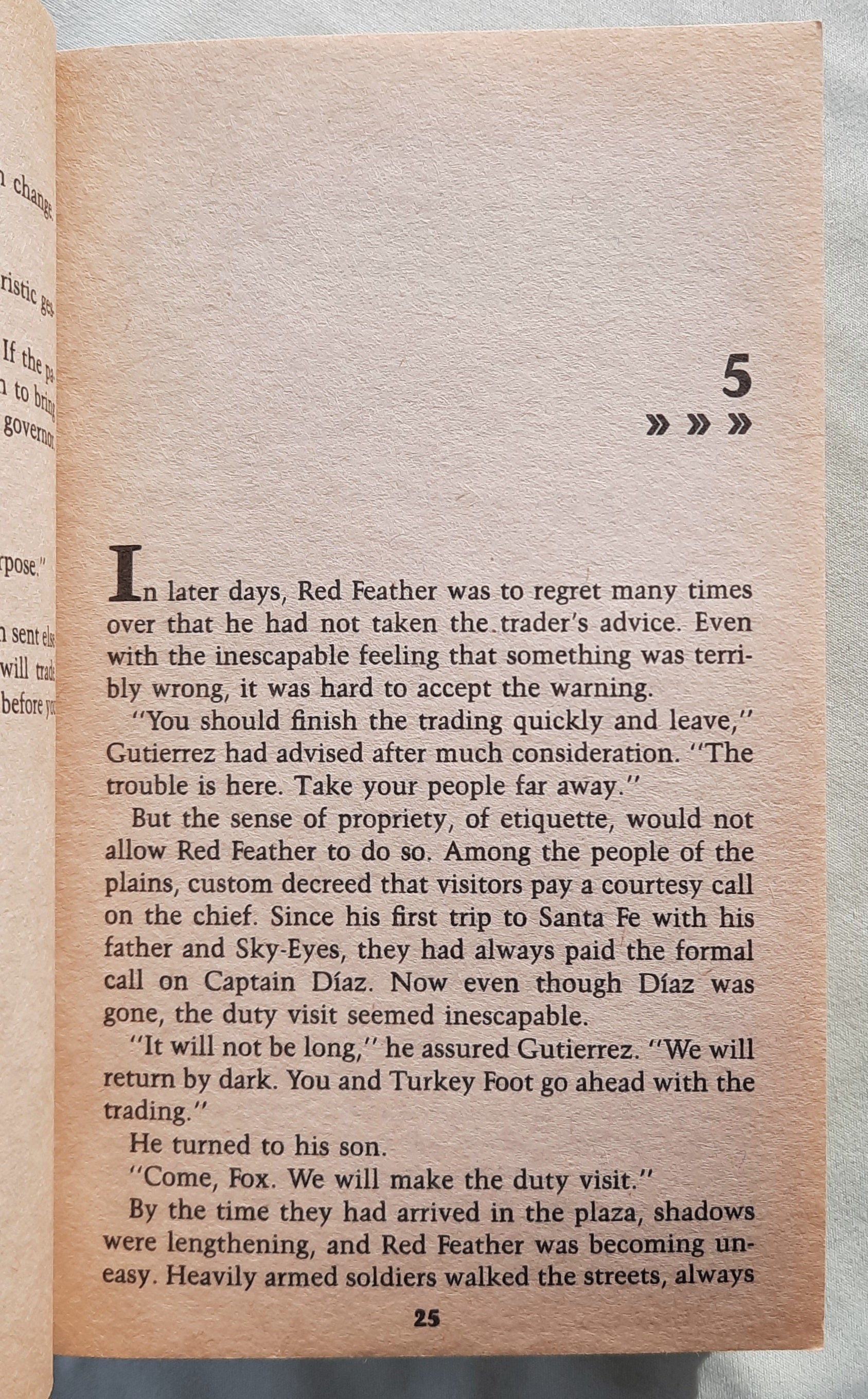 Red Feather, the half-French brave who has traded with the Spanish for many summers, cannot read the signs of change when he comes to Santa Fe on a trading trip. His blindness to the conflict lands him behind bars in the tense days prior to the Pueblo uprising