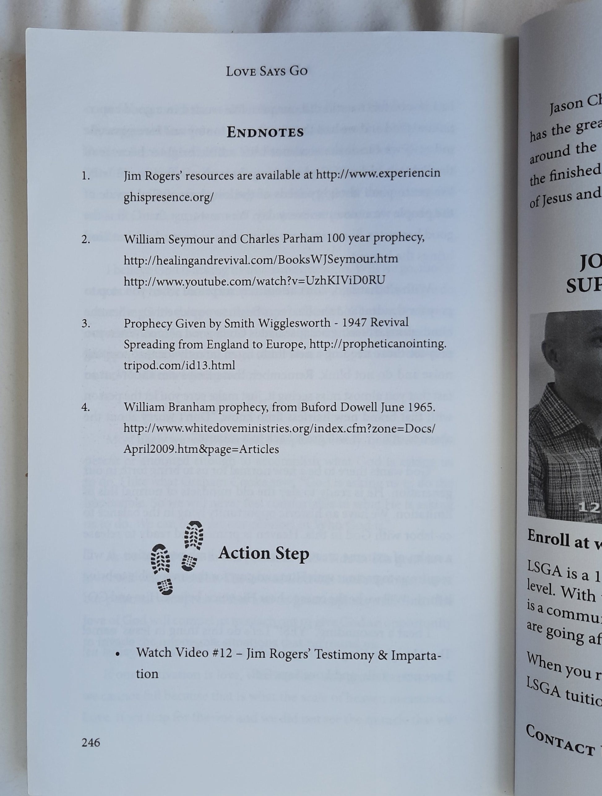 Bill Johnson, "Love Says Go is bound to have a great impact on everyone who reads it. It encourages, gives insight, and provokes the reader to discover what might be possible in their lifetime."