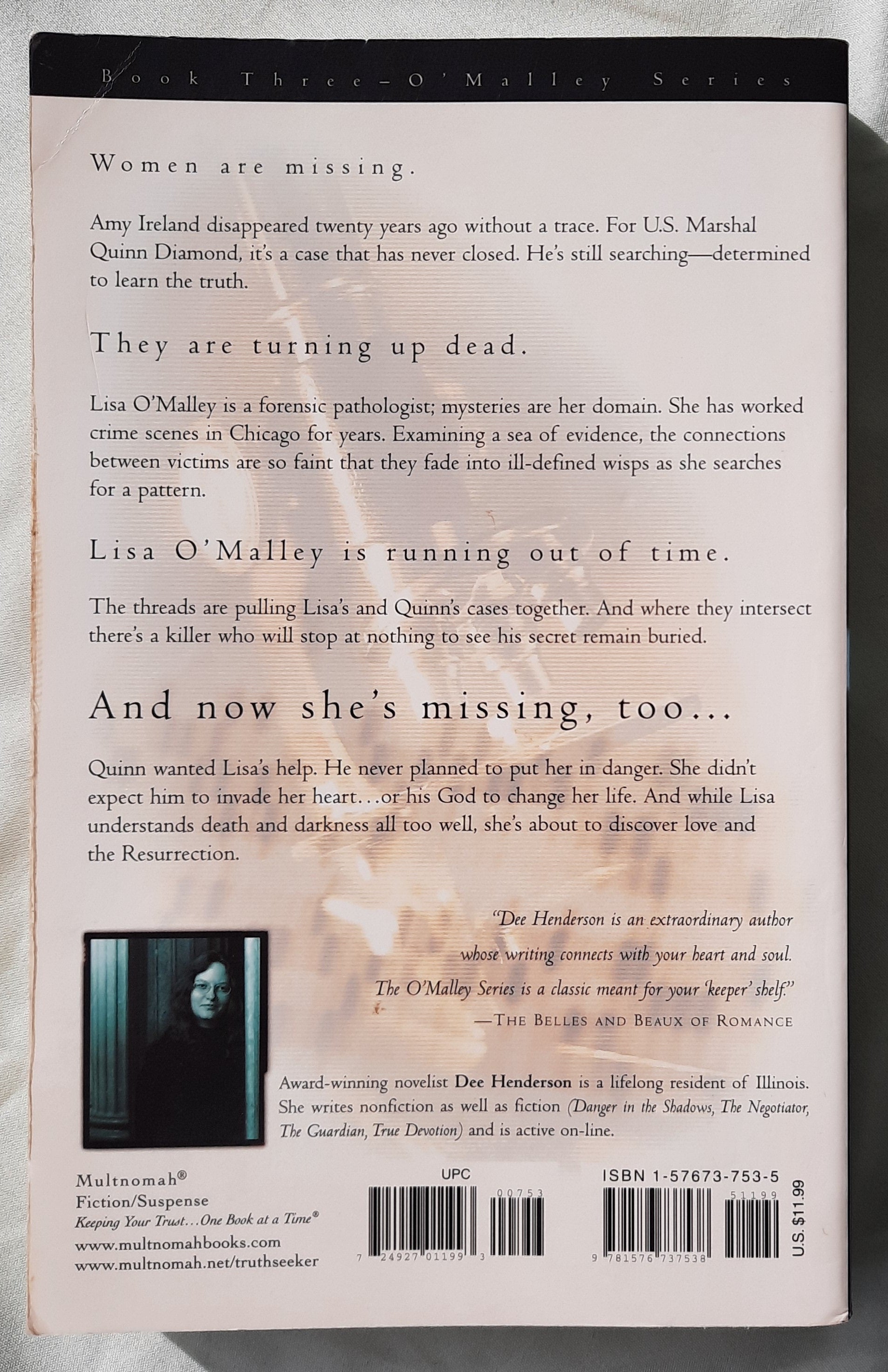 Women are turning up dead. And Lisa O'Malley digging into a crime means trouble is soon to follow. She's a forensic pathologist and mysteries are her domain. Book number three in the O'Malley series brings back Lisa O'Malley and U.S. Marshal Quinn Diamond from The Guardian in a tense investigative thriller. She's not a believer, and her journey toward faith is a fascinating look at how a forensic pathologist views the Resurrection. Quinn has found loving her is easier than keeping her safe. Lisa O'Malley's found the killer, and now she's missing too ...