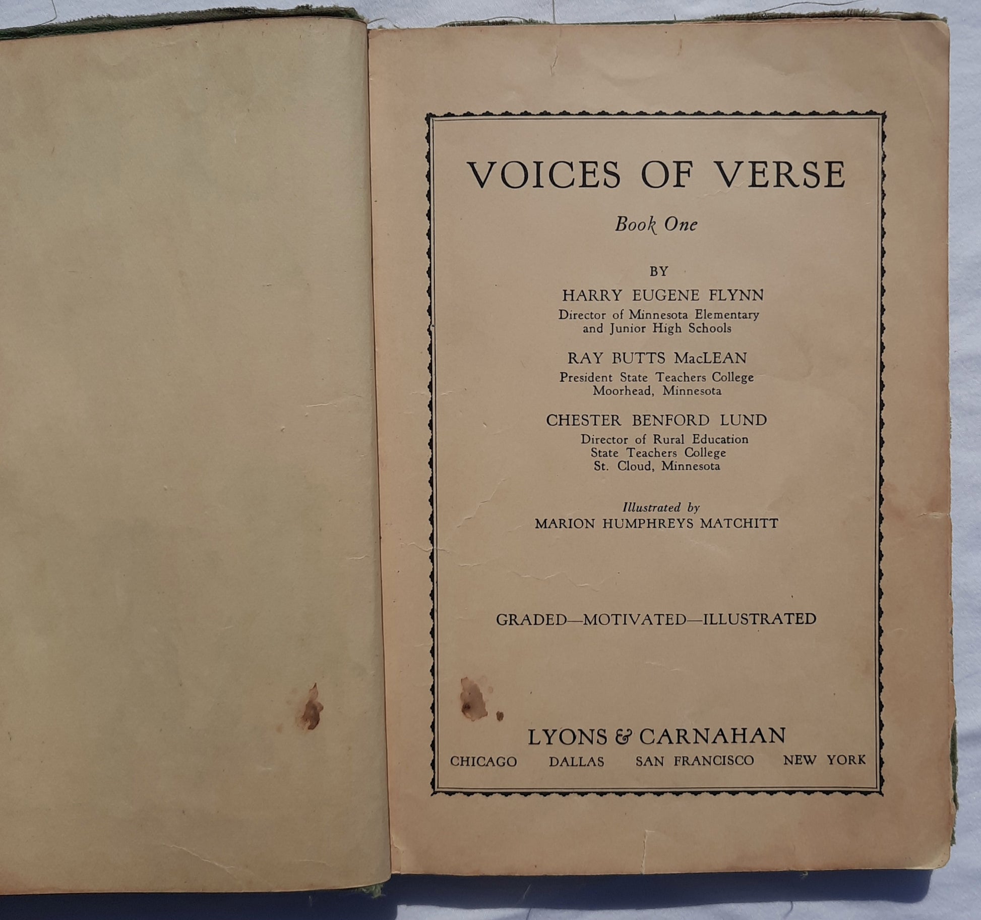 Voices of Verse Book One by Harry E. Flynn; Ray MacLean; Chester Lund (Acceptable, 1933, HC, 150 pages, Lyons & Carnahan)