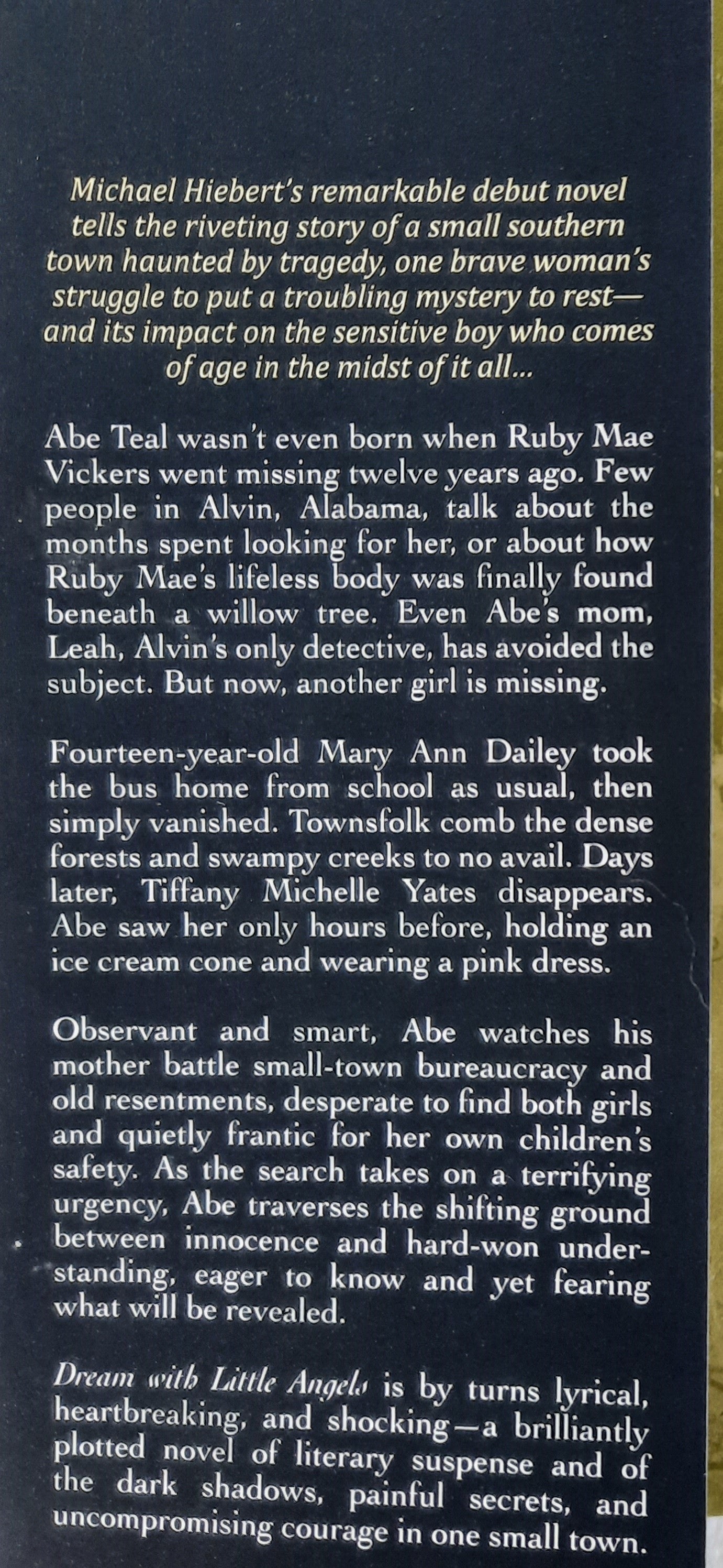 Fourteen-year-old Mary Ann Dailey took the bus home from school as usual, then simply vanished. Townsfolk comb the dense forests and swampy creeks to no avail. Days later, Tiffany Michelle Yates disappears. Abe saw her only hours before, holding an ice cream cone and wearing a pink dress.