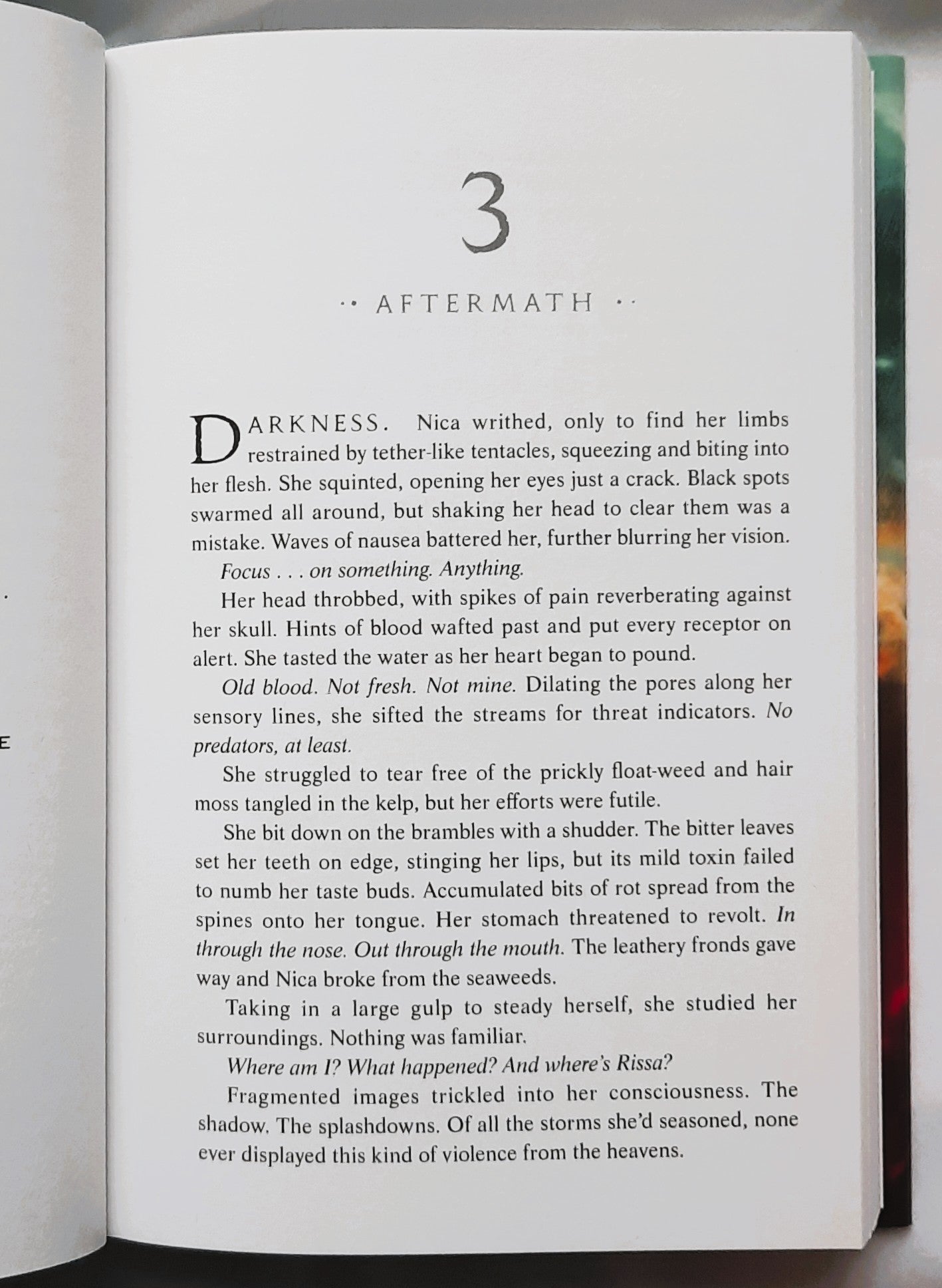 Nica would do anything to avoid the hassles of her sister’s bonding ceremony—the wrap fittings, hairstyles, and braided fire coral—but she never imagined that the waters covering her planet would be broken. As the heavens rained fire and stone, mountains erupted from the sea and dry ground was birthed on the Deep, dividing the water—and the Olomi people—for the first time in their history.