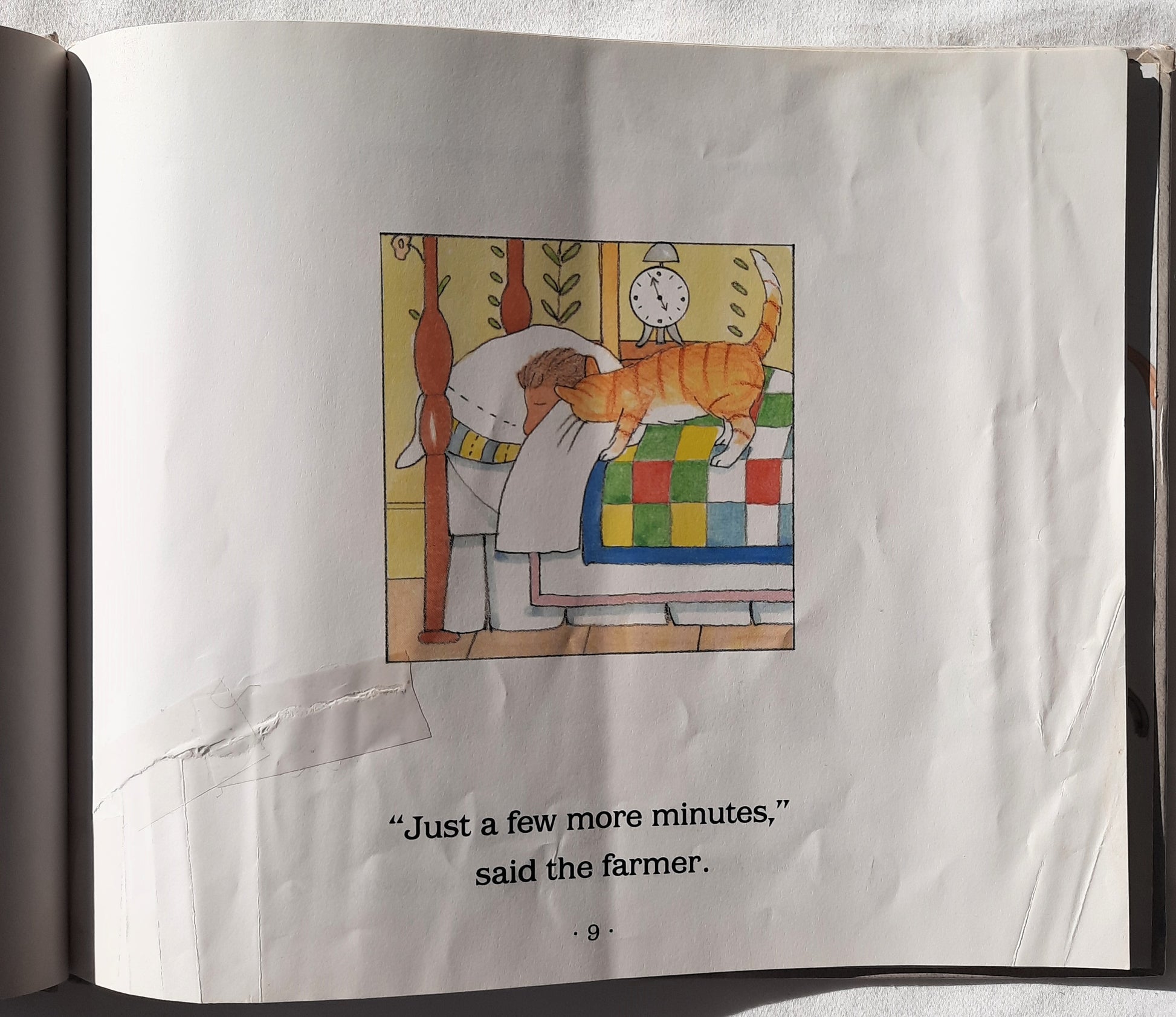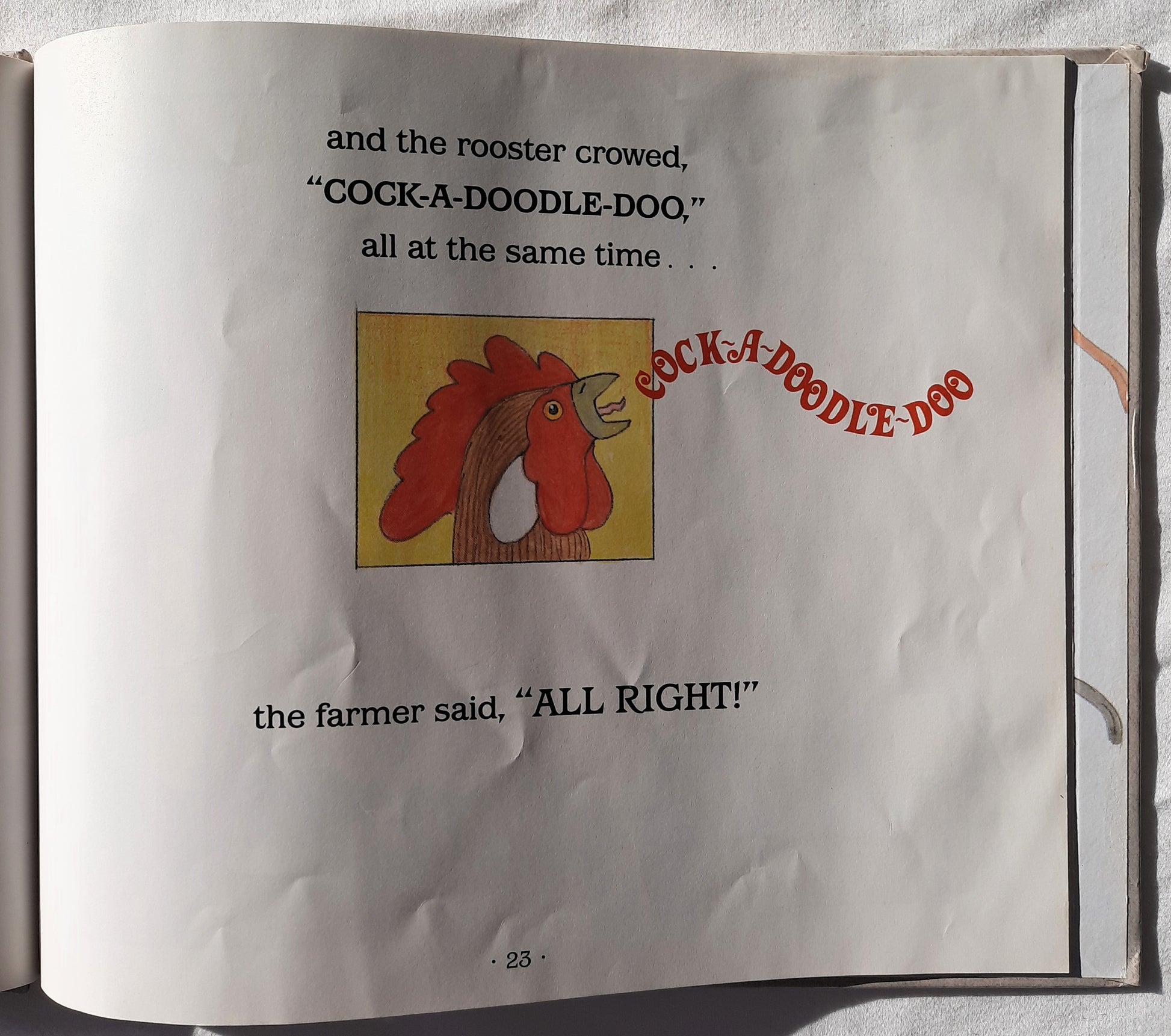 Not until all his animals join voices is a farmer able to get out of bed in the morning in this brightly illustrated humorous children's book.