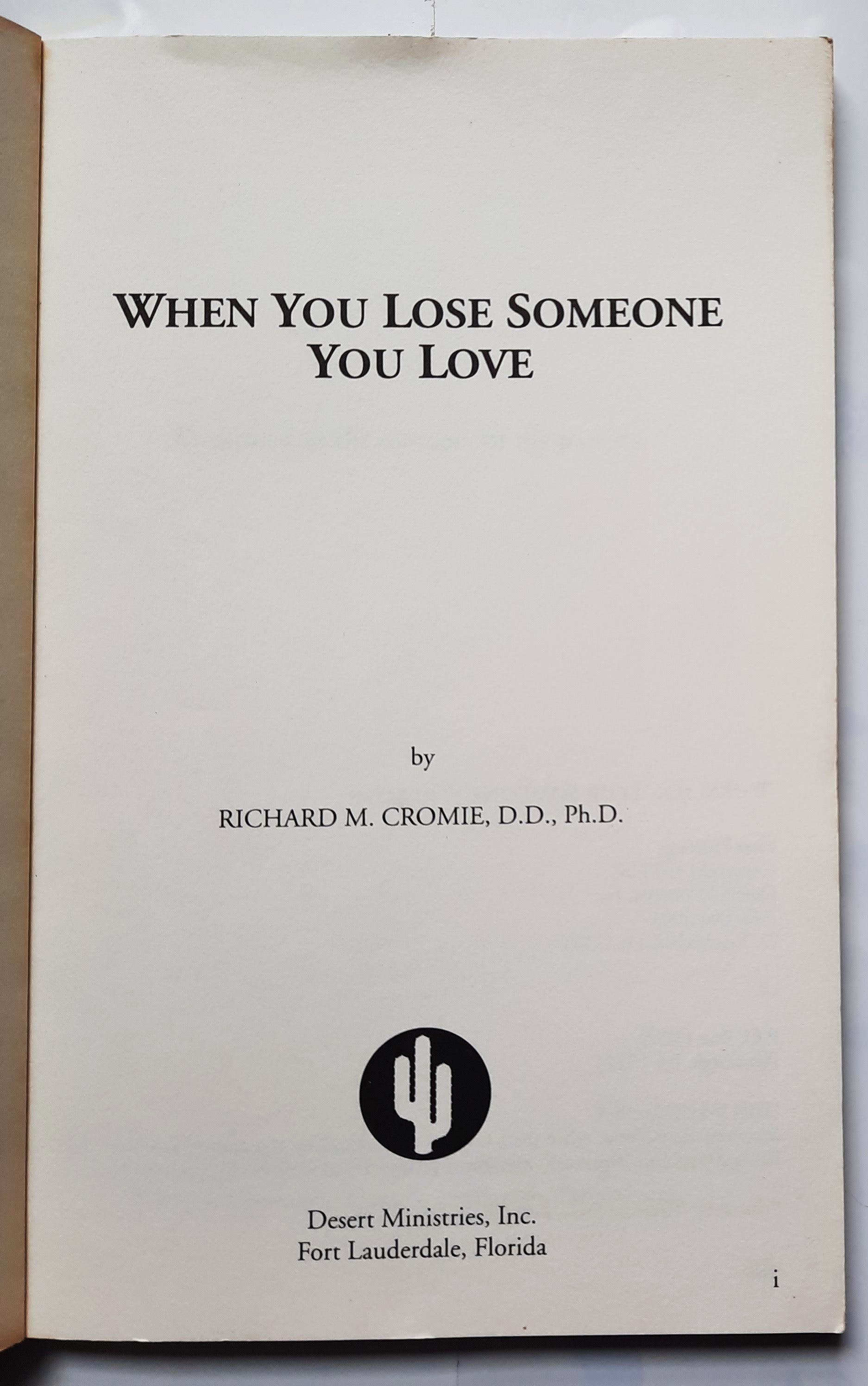 When You Lose Someone You Love by Richard M. Cromie (Good, 1993, Pbk, 61 pages, Desert Ministries)